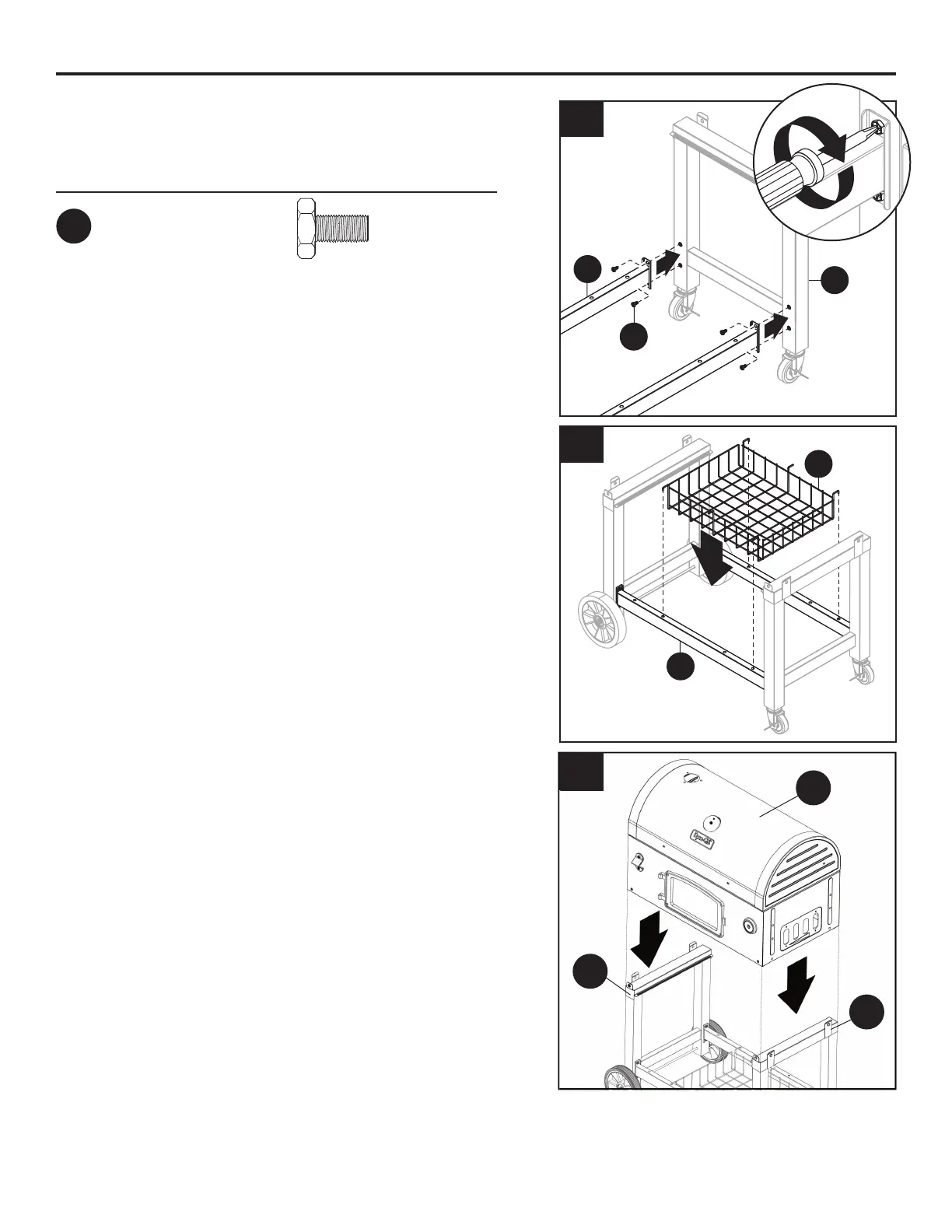 5. Attach storage basket (O) to cart braces (L).