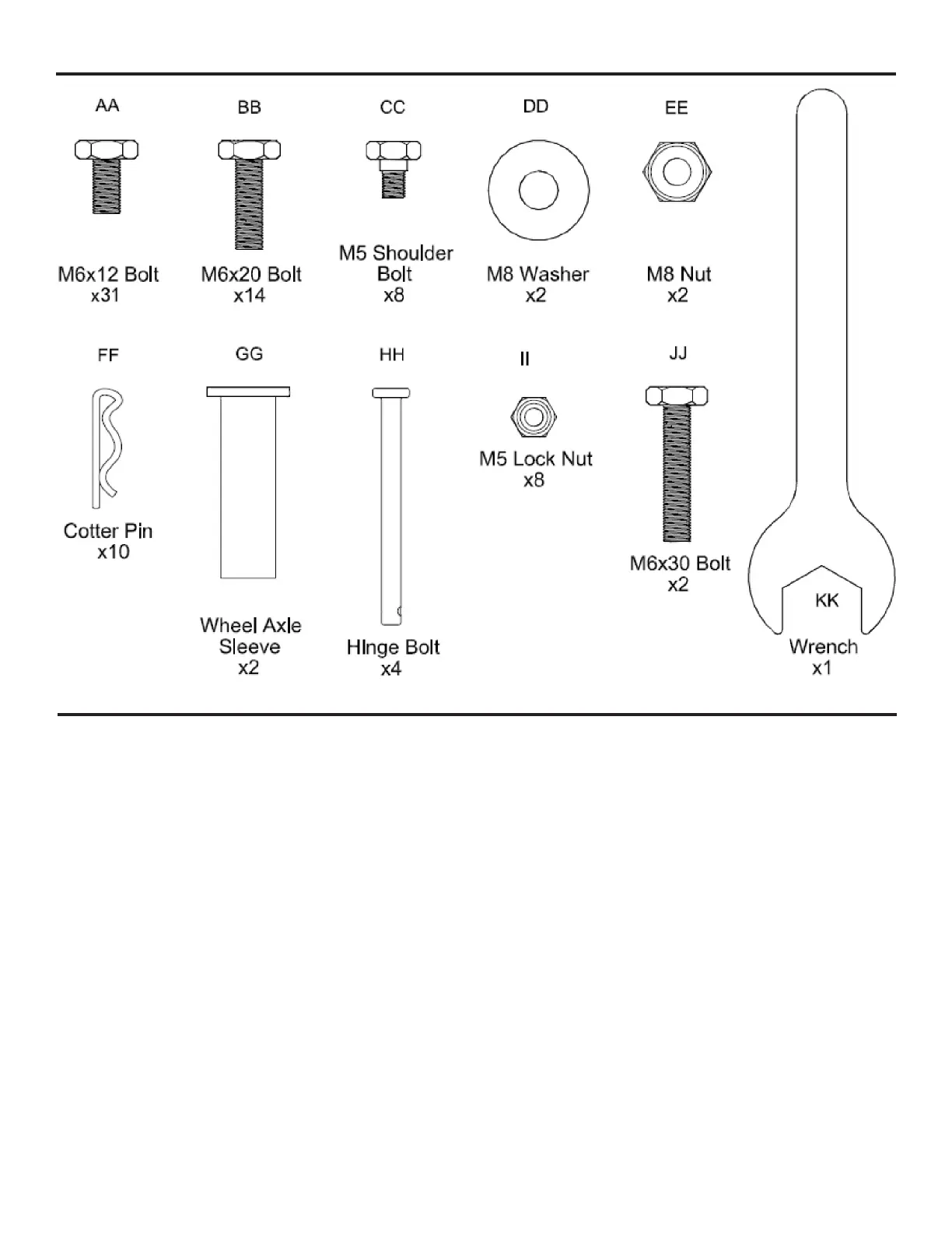 Tools Required for Assembly (not included): Phillips screwdriver, adjustable wrench.