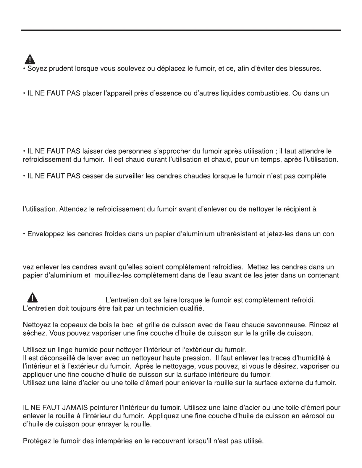 domestiques. Rangez le fumoir dans un endroit sec et sécuritaire.