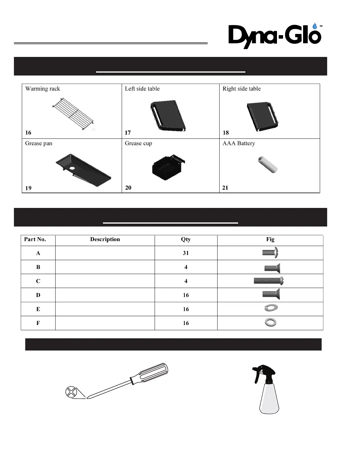 Dyna-Glo DGP350SNP - Hardware Contents; Tools Required for Unpacking
