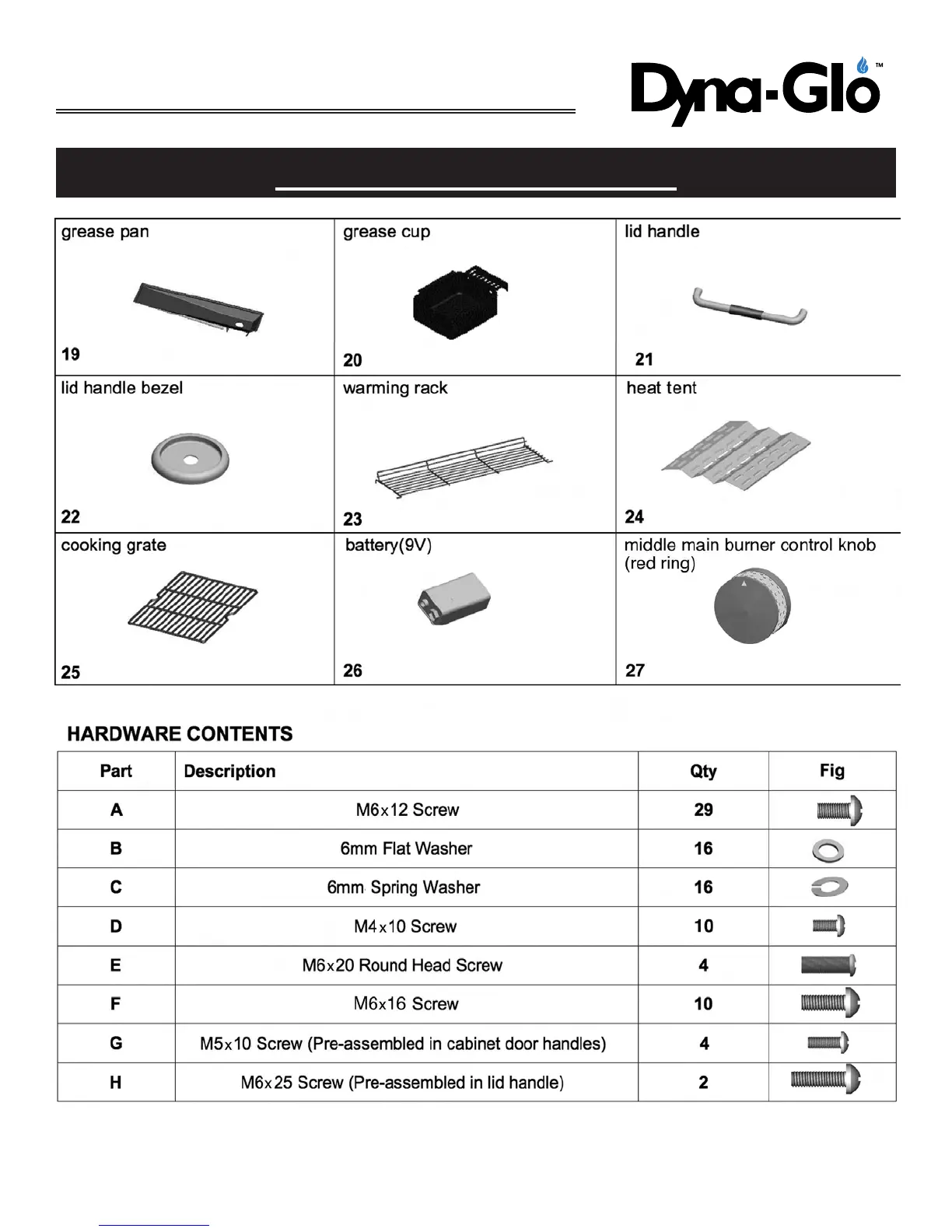 Dyna-Glo DGP480CSP - Hardware Contents