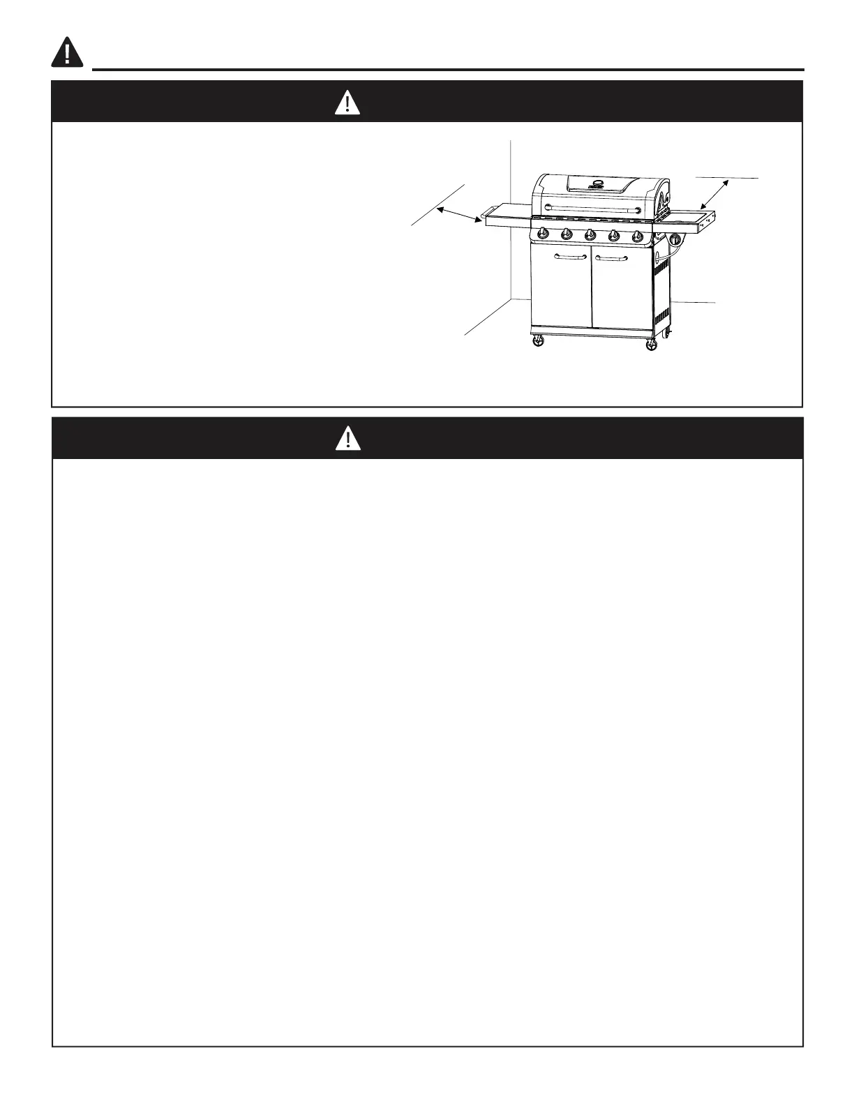 • Keep all combustible items and surfaces at least 36 inches (91.44 cm) away from the grill at all