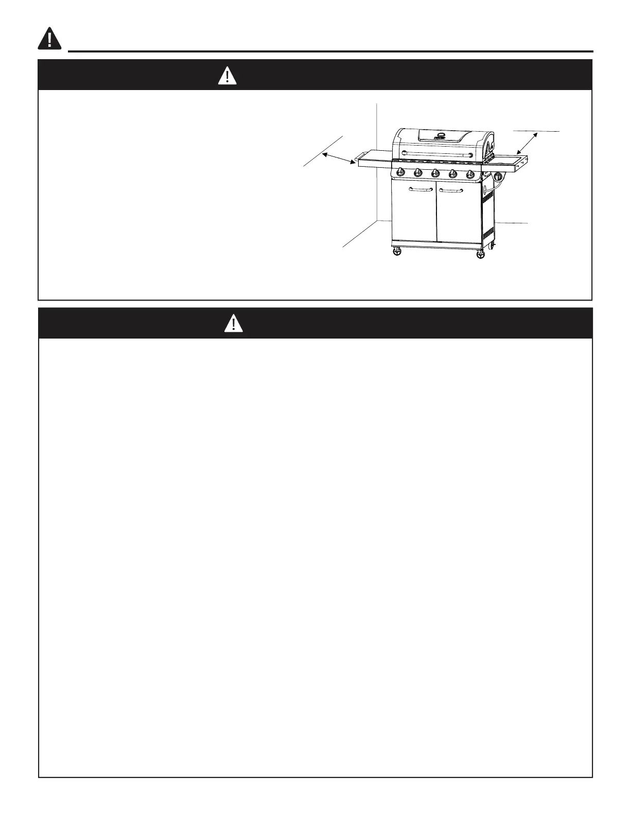 • Mantenga en todo momento una distancia de, por lo menos, 36 pulgadas (91,44 cm) entre la parrilla y