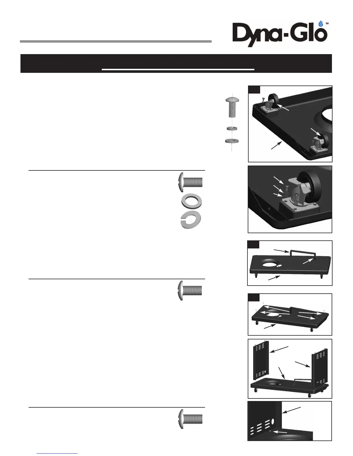 of the cart bottom shelf (1). Tighten all screws. As illustrated,