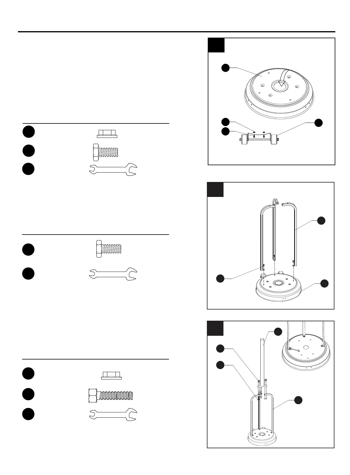 2. Sans serrer, attacher trois supports (F) à la base (G)
