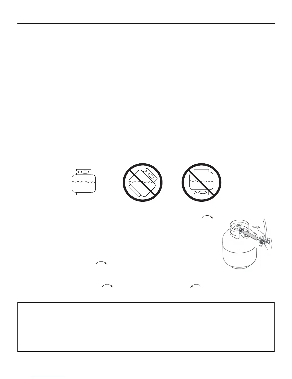 Connect regulator valve and hand-tighten rmly. Keep the propane cylinder valve closed, and disconnect the