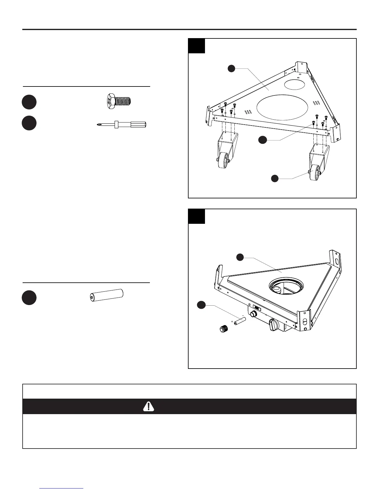 1. Fije ambos conjuntos de ruedas (Q) a la placa