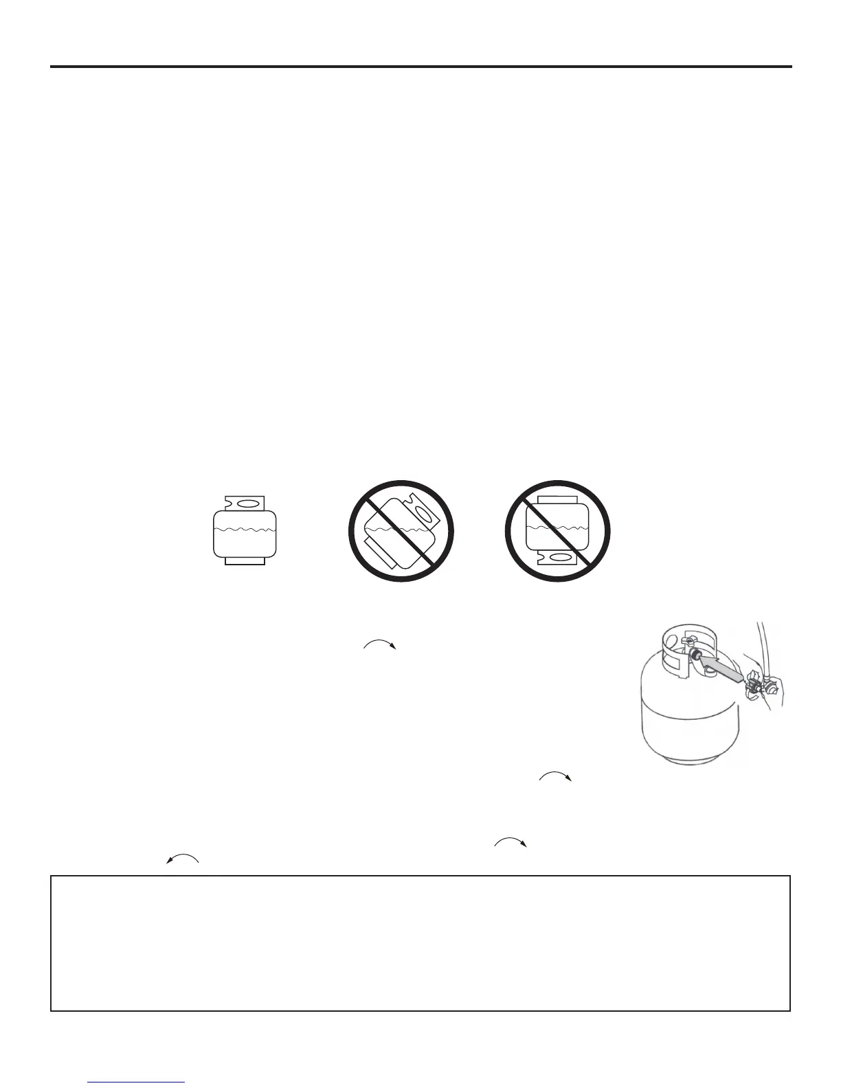 1. La perilla del tanque de gas propano debe estar cerrada. Asegúres de que la perilla