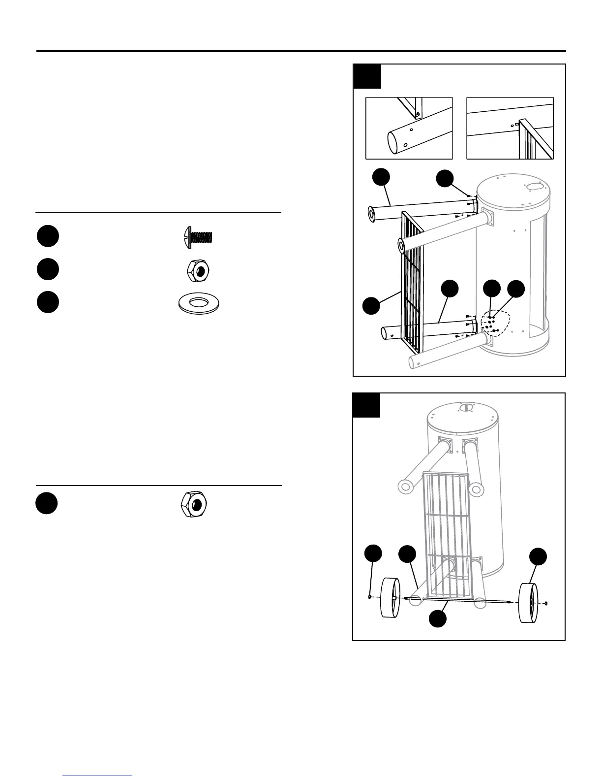 4. Insert the wheel axle (R) through the holes in the