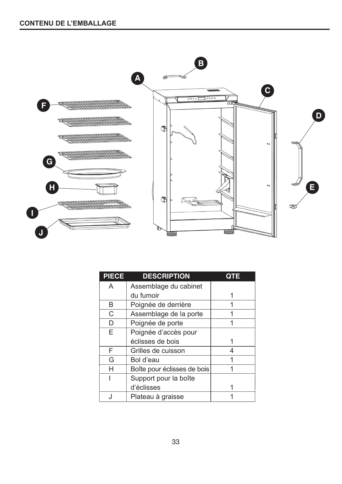 Dyna-Glo DGU732BDE-D-1 - Contenu de Lemballage