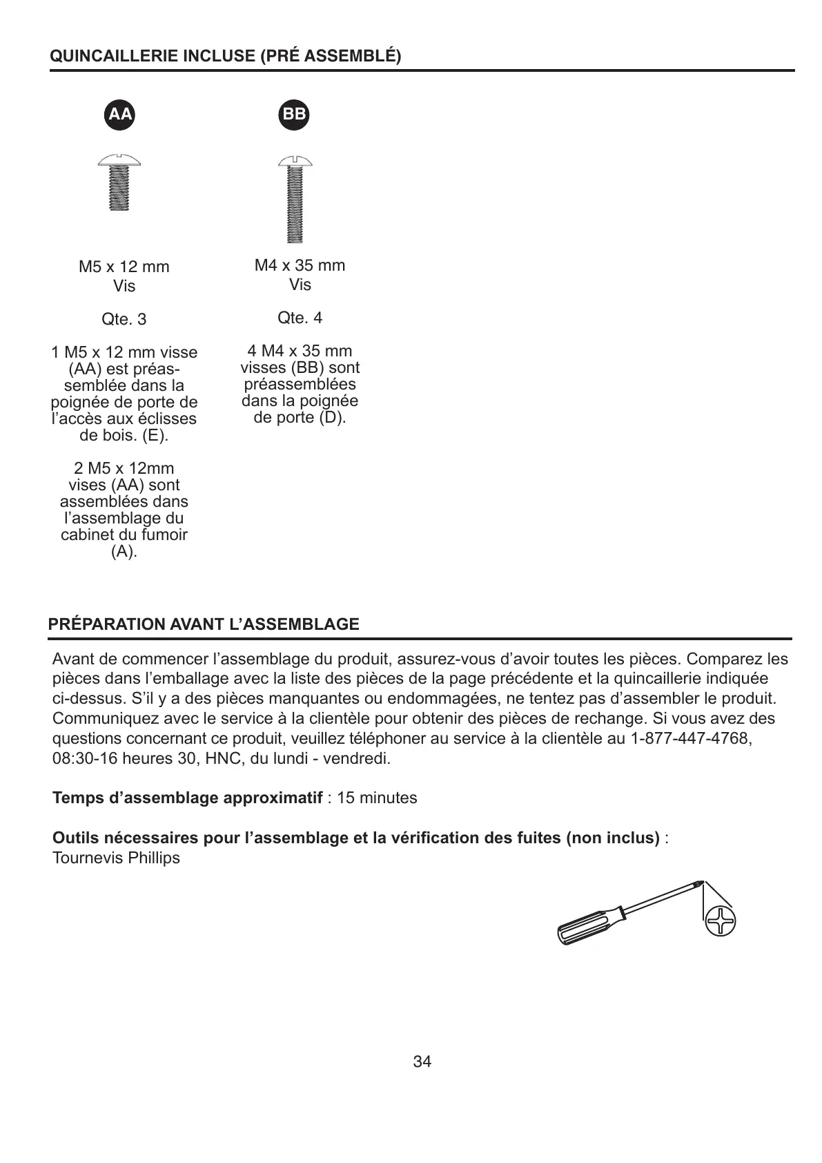 Avant de commencer l’assemblage du produit, assurez-vous d’avoir toutes les pièces. Comparez les