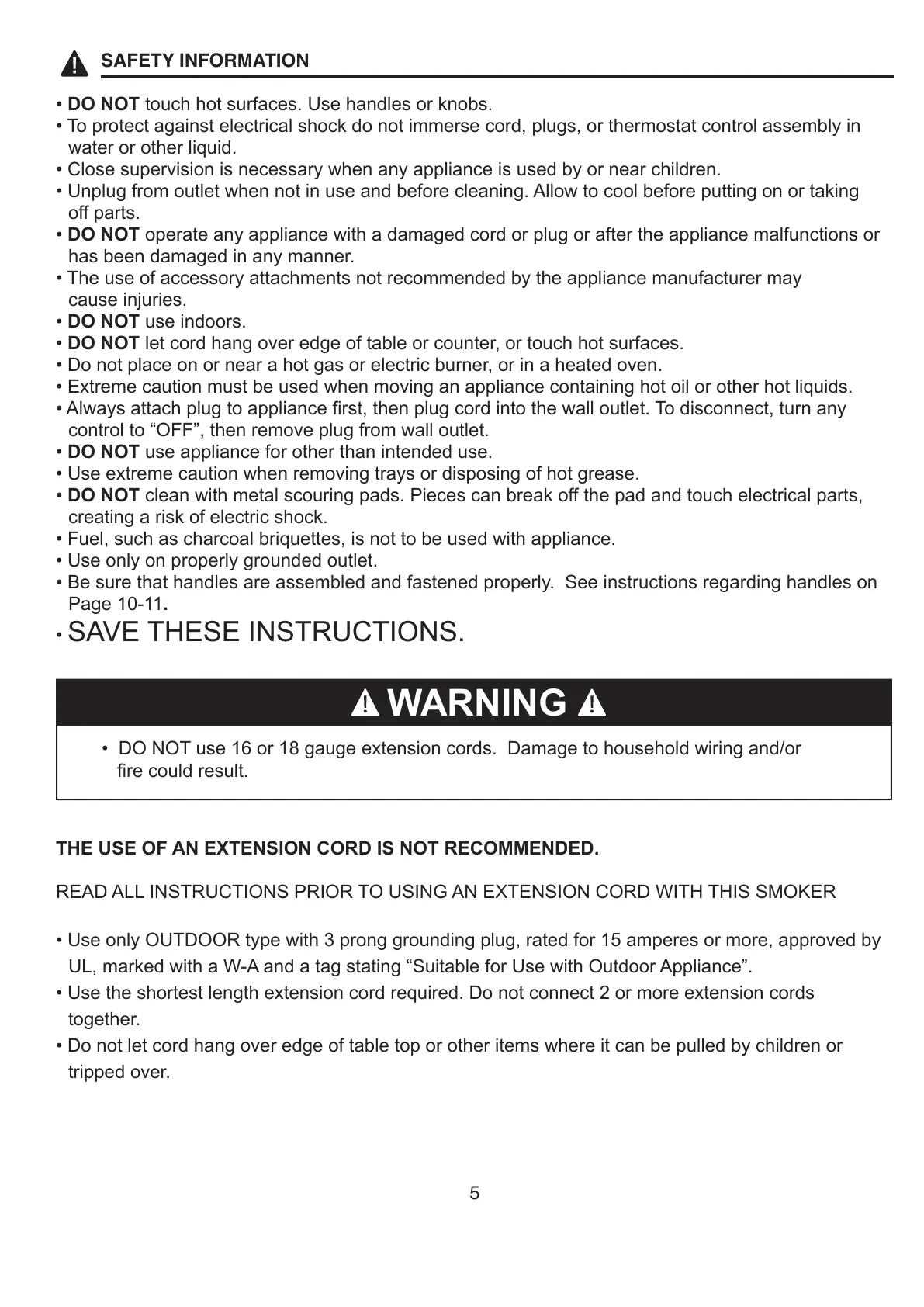 READ ALL INSTRUCTIONS PRIOR TO USING AN EXTENSION CORD WITH THIS SMOKER