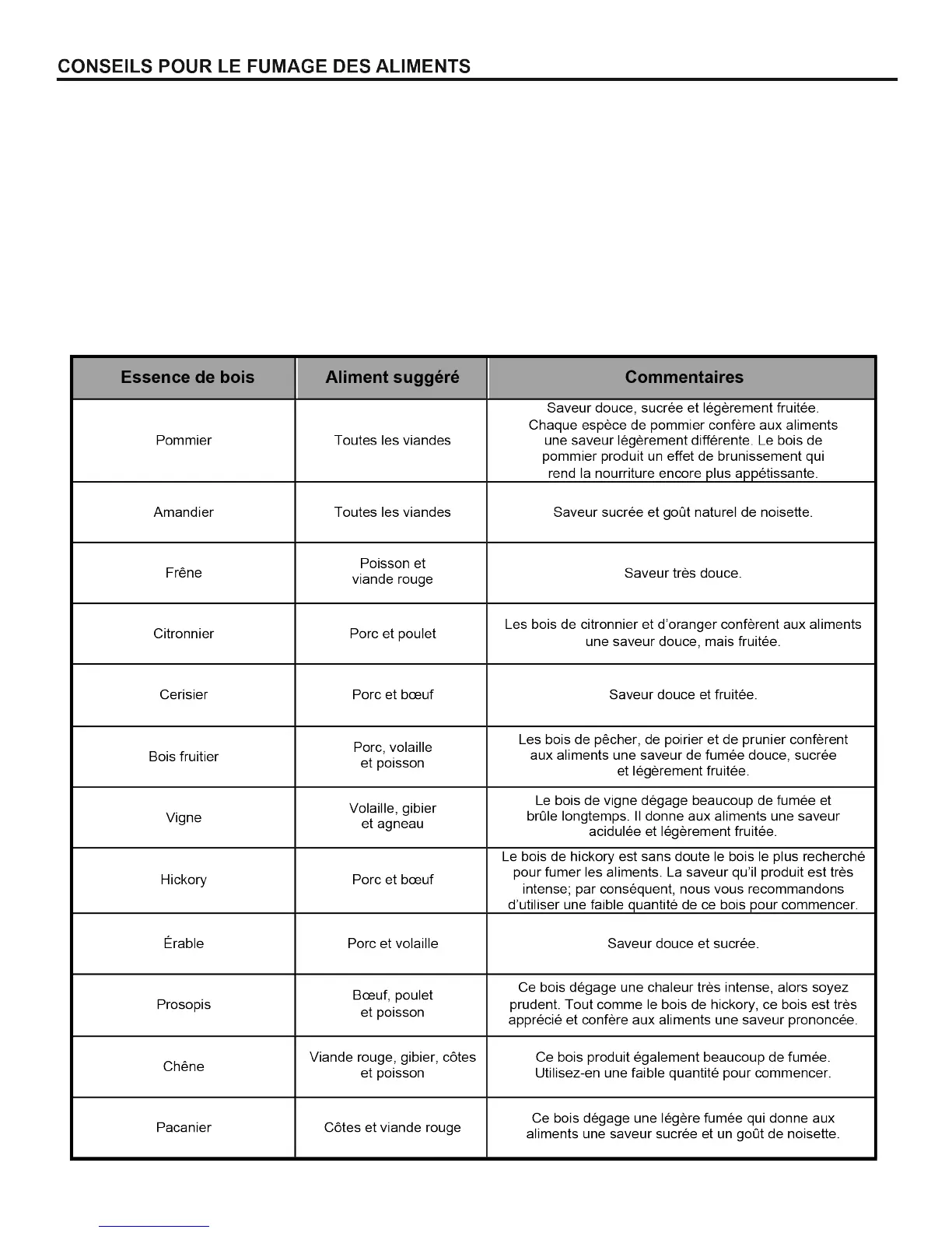 • Le bois dur comme le bois du noyer, pacanier, pommier, cerisier, mesquite brûlent généralement plus