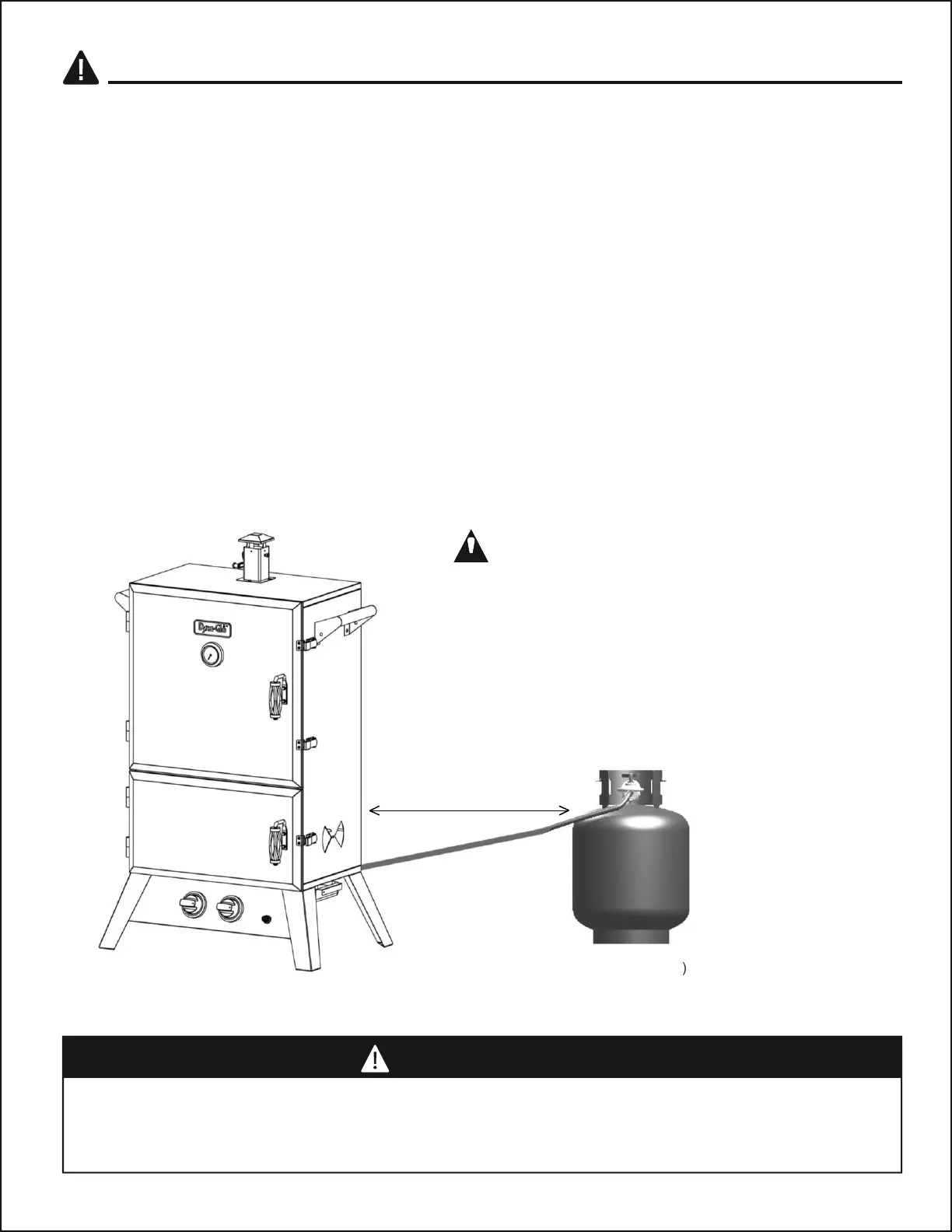 • Do not use the smoker if the burner fails to light or fails to remain lit. Under such conditions, gas