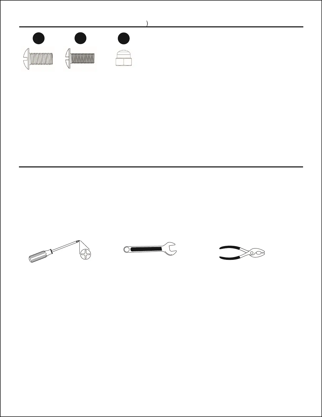 Tools Required for Assembly (not included): Phillips Head Screwdriver, Wrench, and Pliers.