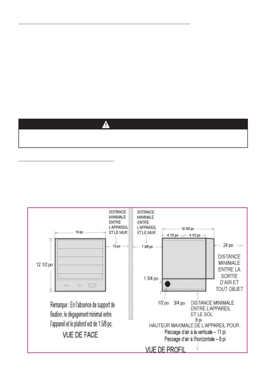 9. Le radiateur doit être installé à au moins 8 pieds du sol.