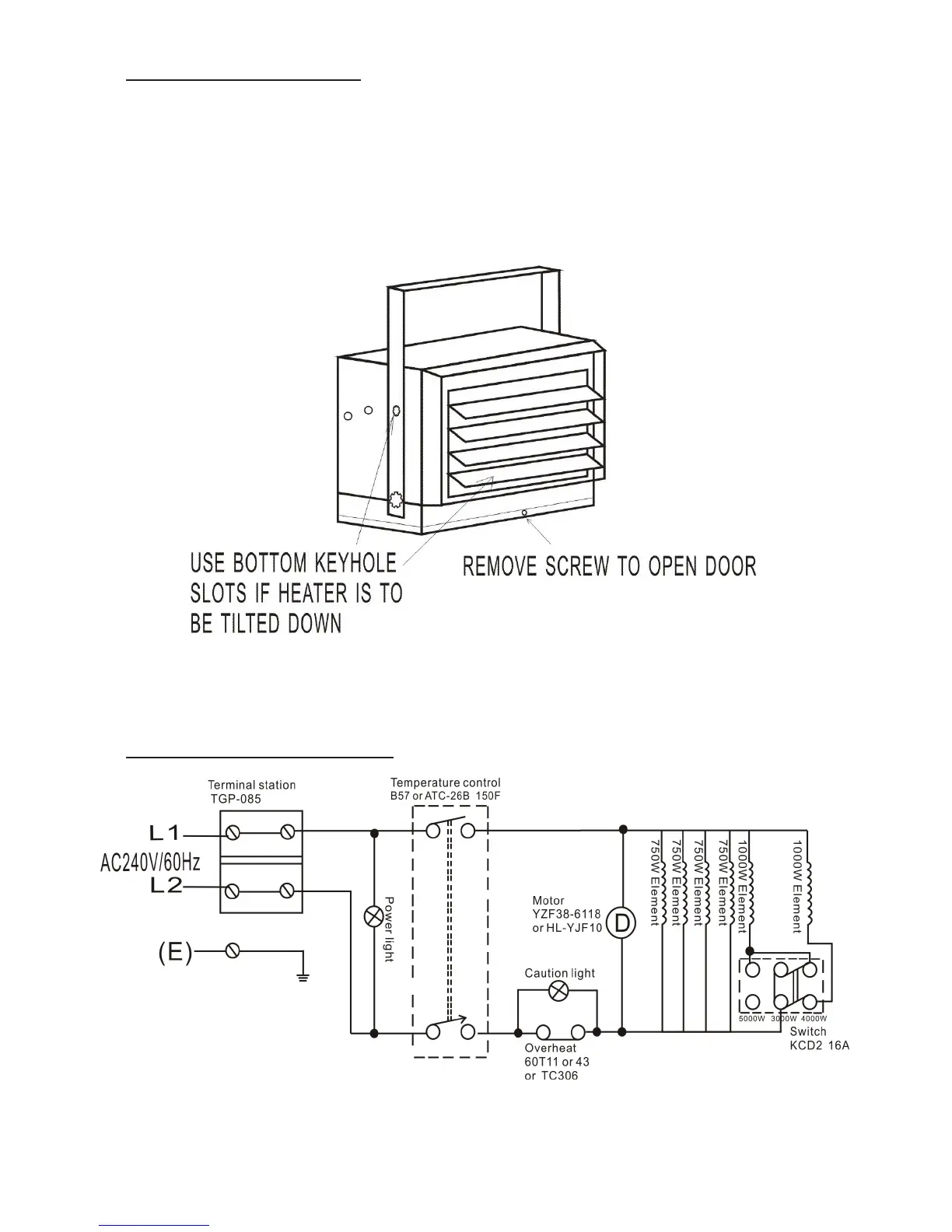 4. If the heater is to be tilted it must be positioned in the keyhole slots - see gure 5.