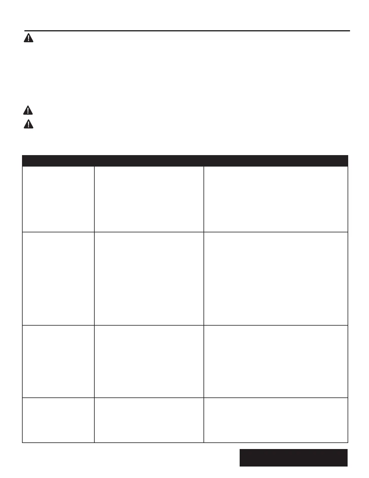PROBLEM POSSIBLE CAUSE CORRECTIVE ACTION