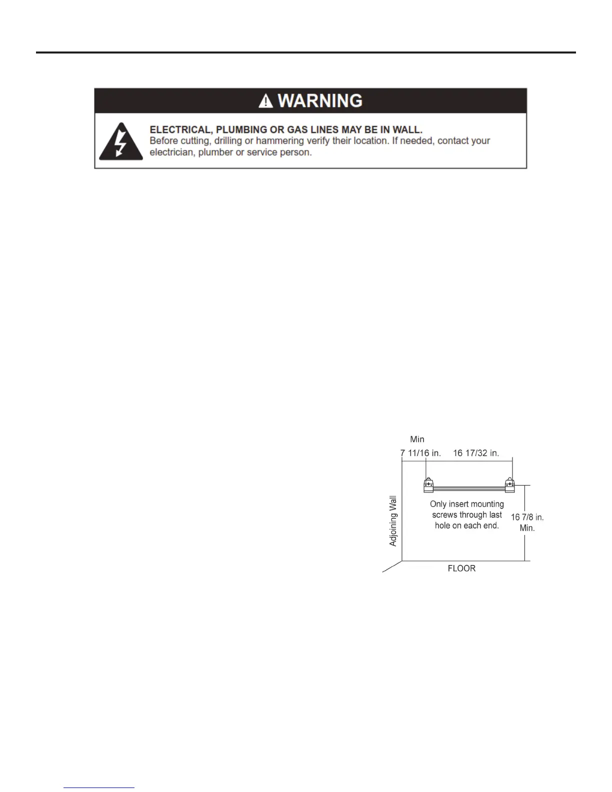 Use only the last hole on each end of mounting bracket to attach bracket to wall. Attach