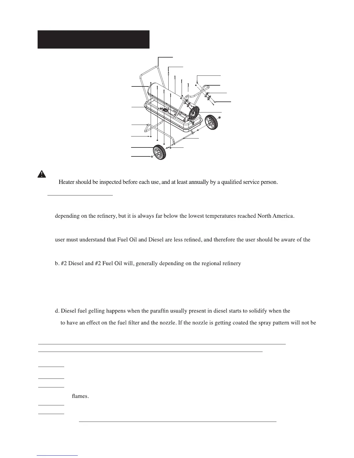 CAUTION: DO NOT OPERATE heater without support frame assembled to tank.