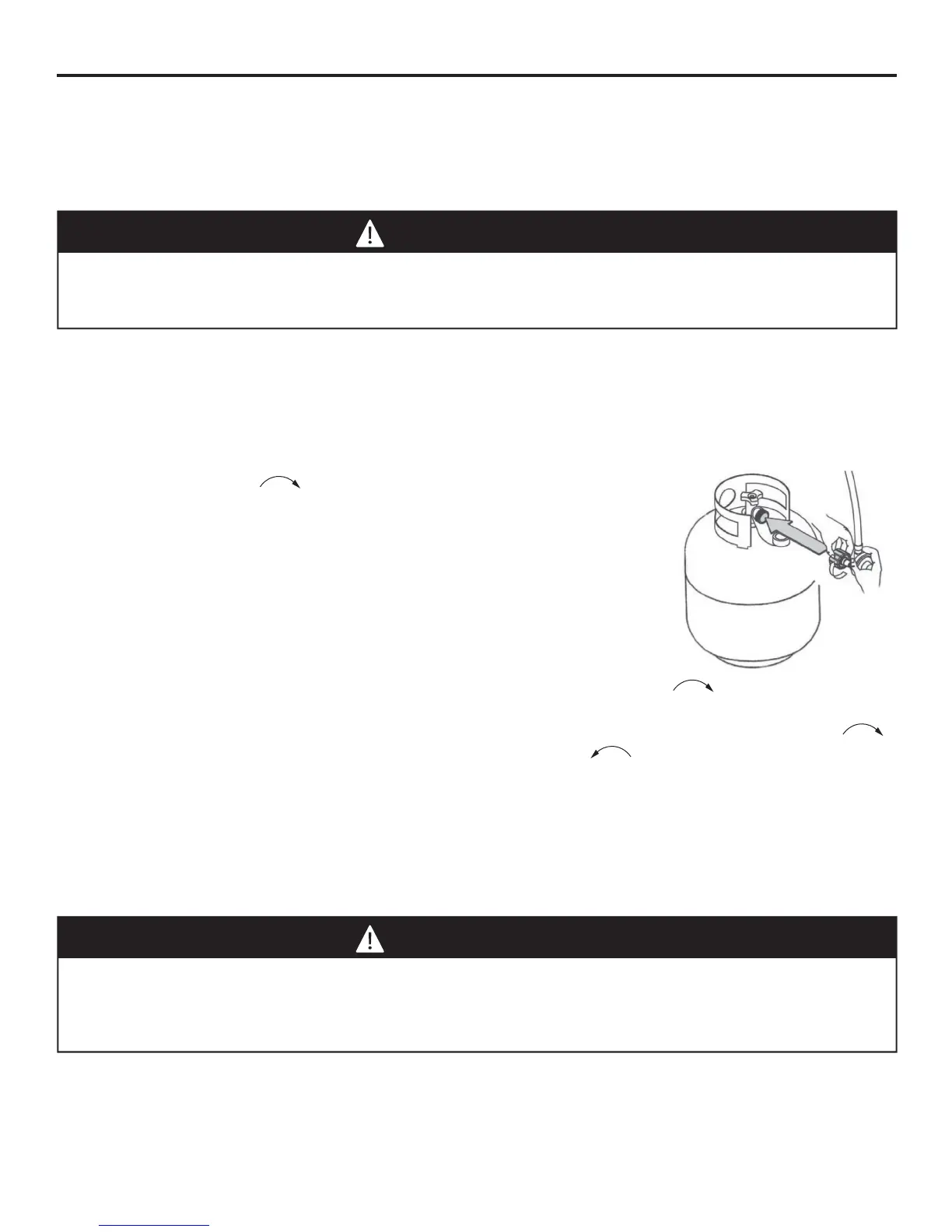 1. La perilla del tanque de gas propano debe estar cerrada. Asegúrese de girar la perilla en sentido de