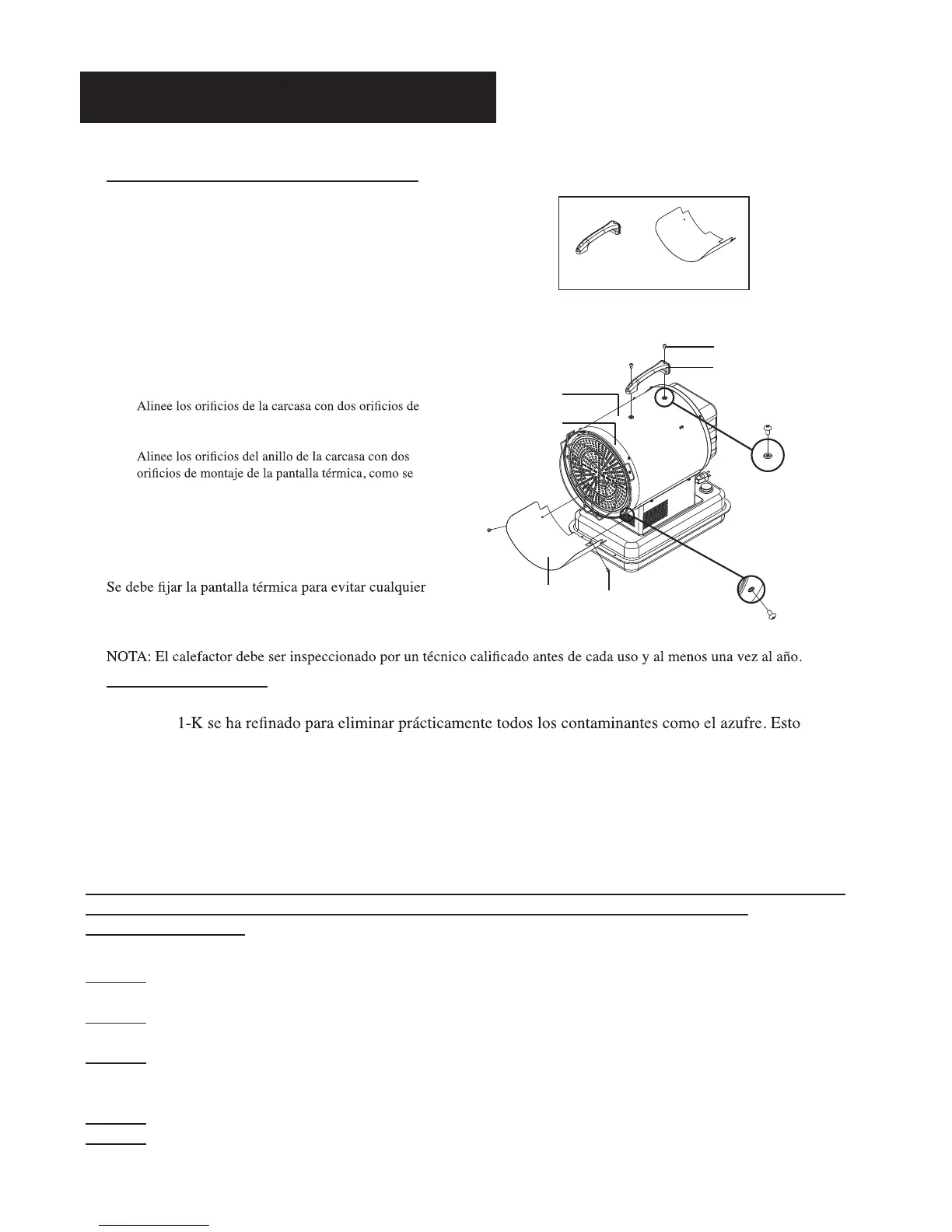 Para un óptimo rendimiento de este calefactor, se sugiere enfáticamente utilizar kerosene 1-K. El