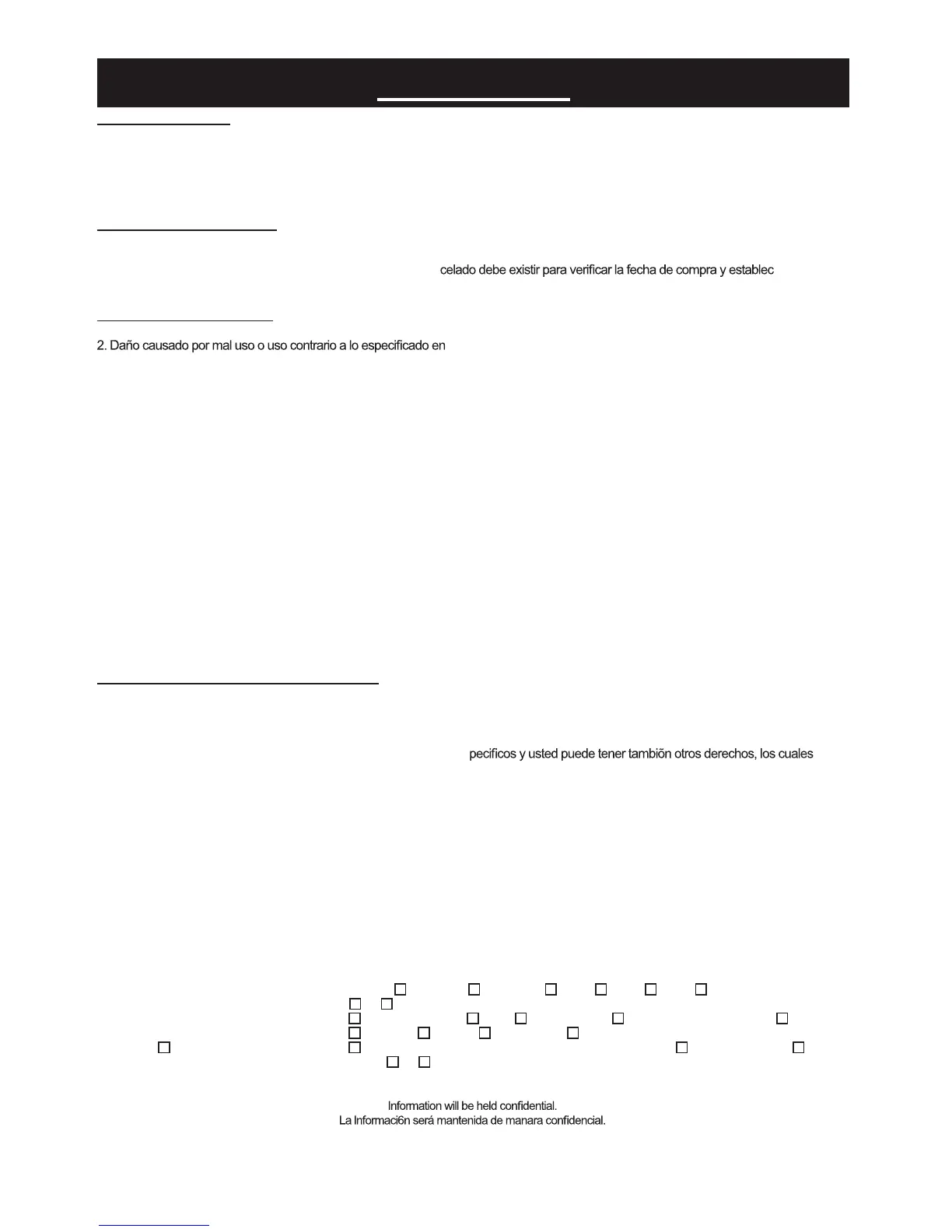 2. Si el vendedor no puede resolver el problems, contacte a nuestro Departamento de GarantÍa al Consumidor detallando el modelo de