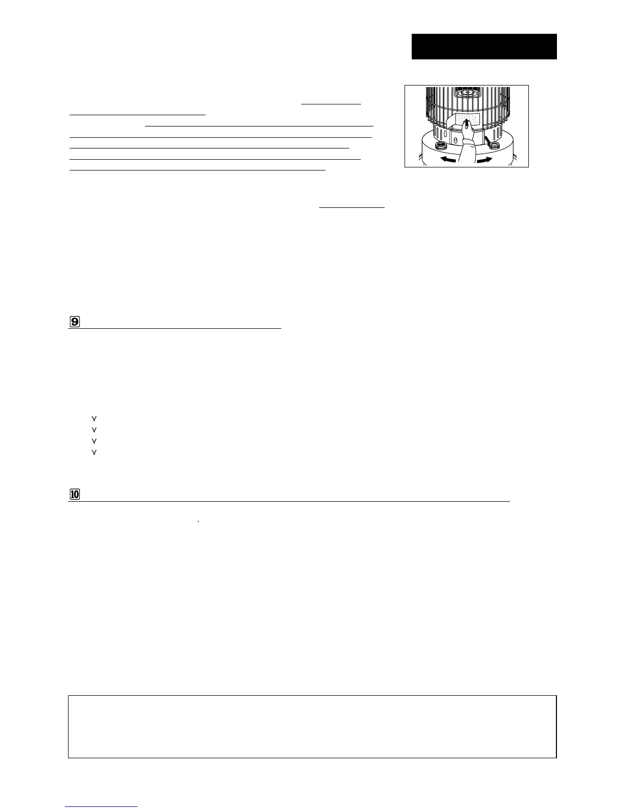 WARNING : RISK OF INDOOR AIR POLLUTION AND FIRE, DO NOT OPERATE HEATER AT WICK