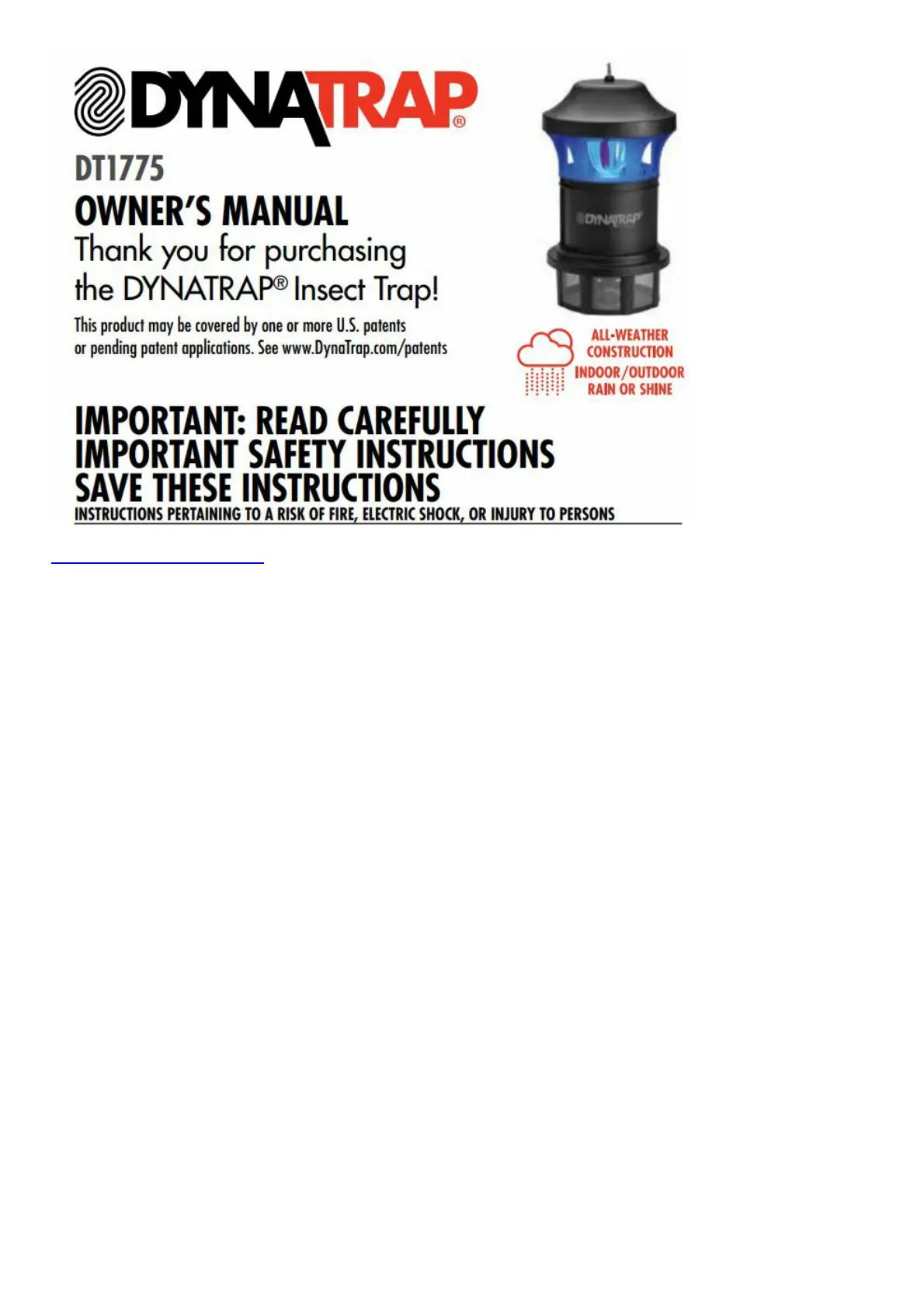 1. Please read all instructions before using the DynaTrap® Insect Trap and keep for future reference.