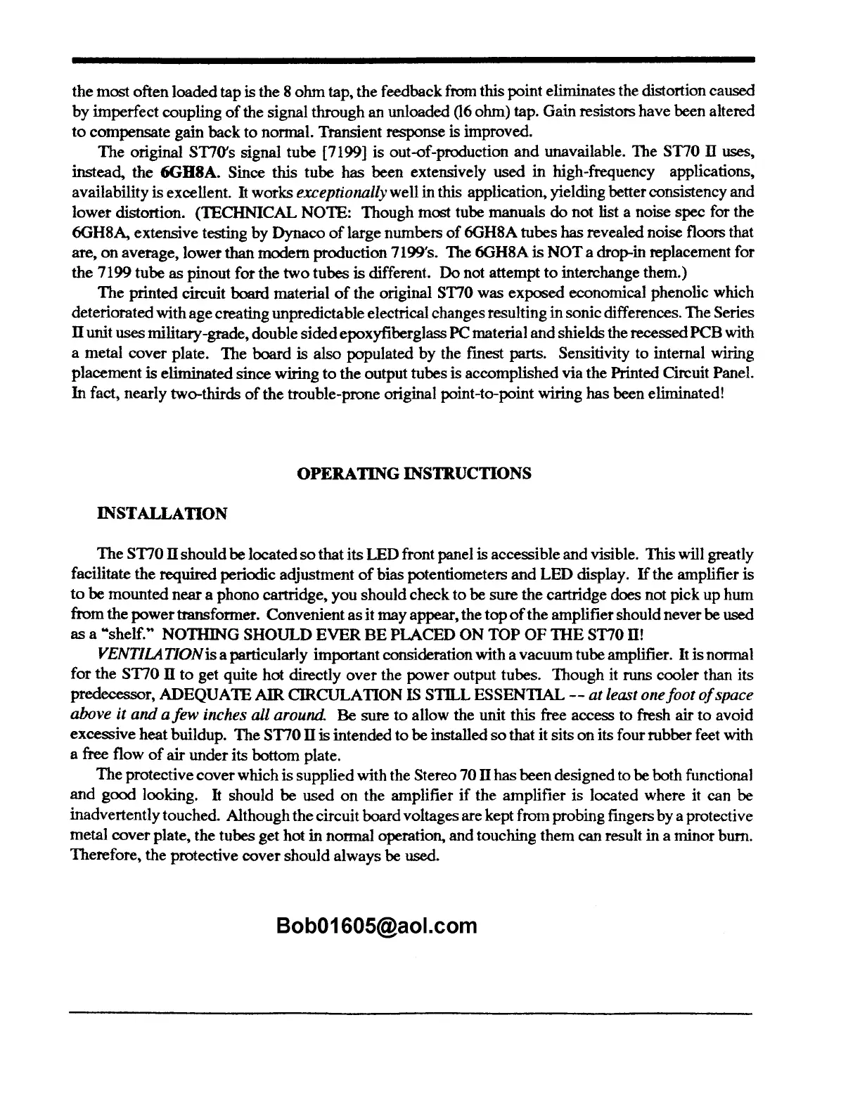 DYNACO Stereo 70 - Performance Enhancements; Feedback Point Optimization; Tube Replacement: 7199 to 6 GH8 A; Improved PCB and Wiring