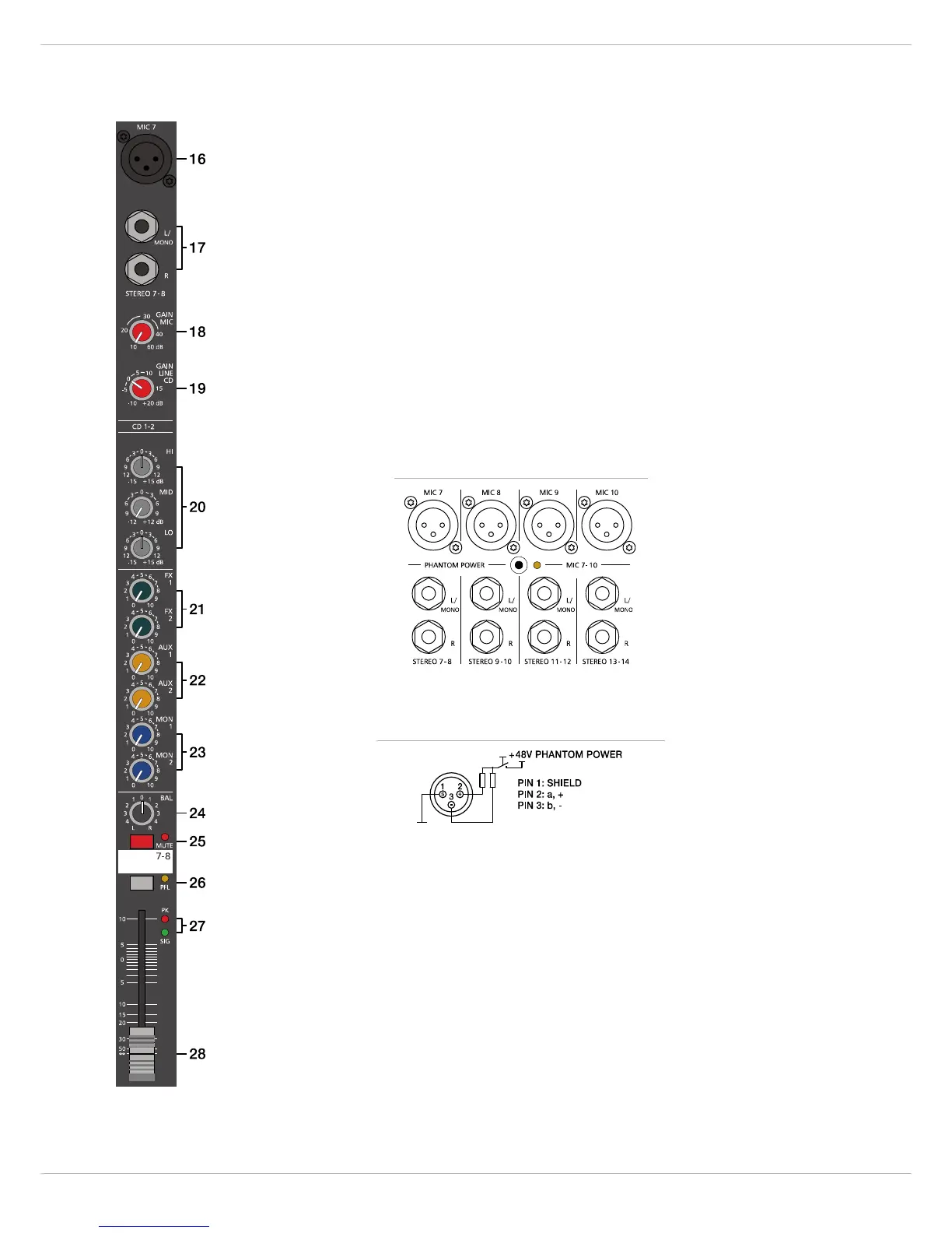 Auch die Stereo Kanalzüge enthalten einen elektronisch symmetrischen XLR Eingang für niederohmige