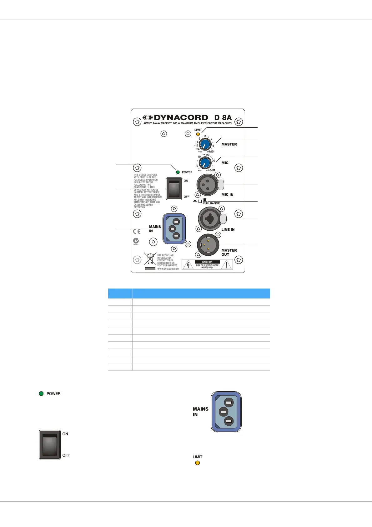 8 Schalter für Betriebsart (LO-CUT / FULLRANGE)