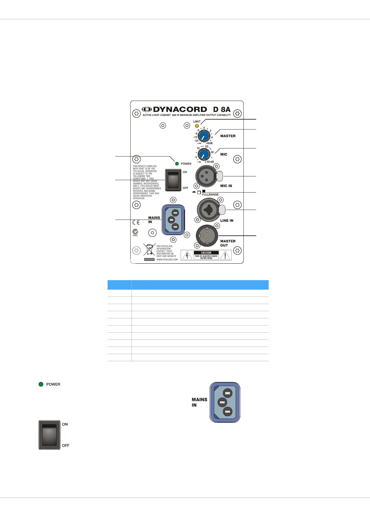 8 Sélecteur de Mode (LO-CUT / FULLRANGE)