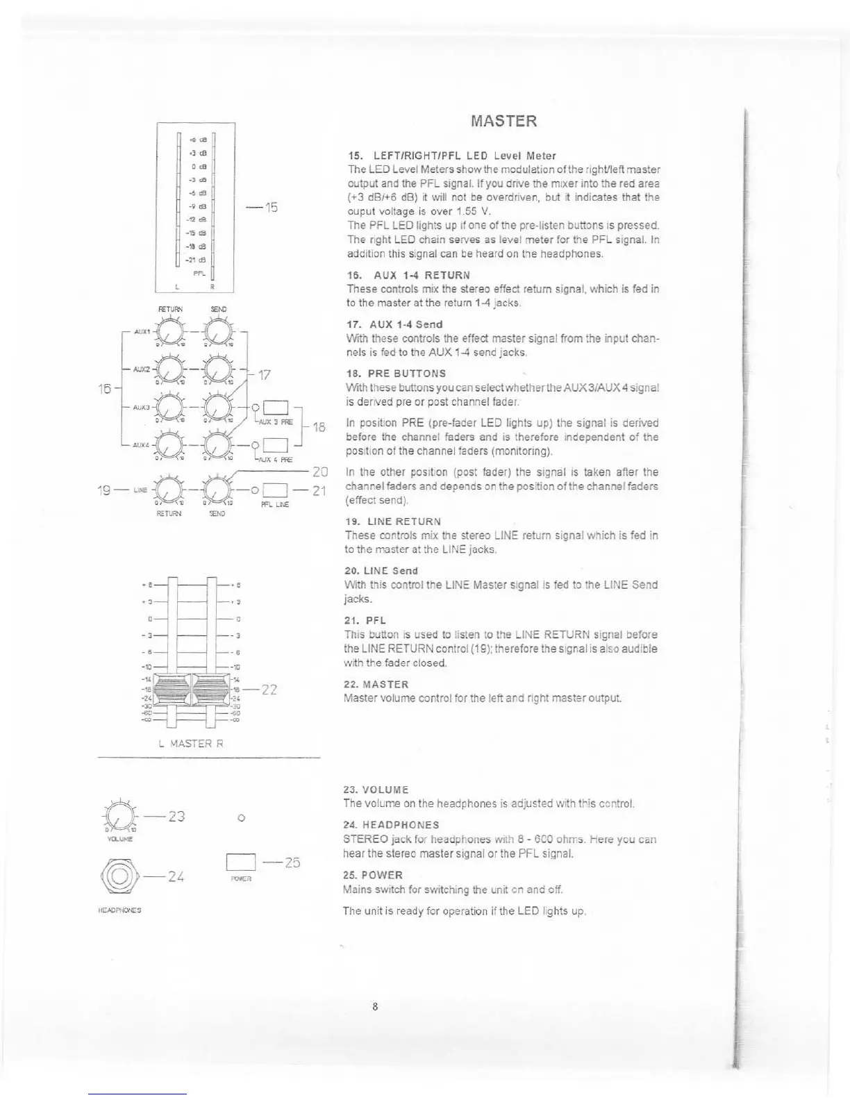 Dynacord MCX 1900 - Master Section Controls; LED Level Metering and Aux Returns; Line Returns and Sends; Master Volume Control