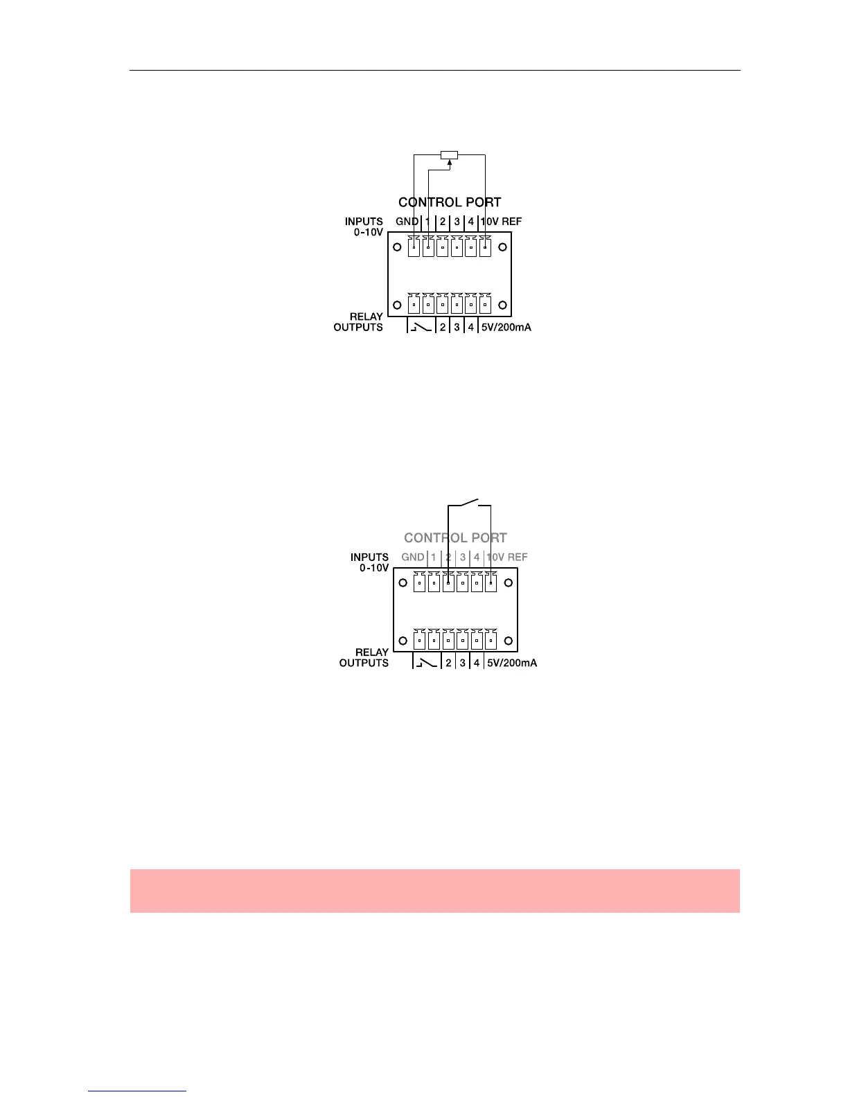 The lower part of the control port, which is marked as RELAY OUTPUTS on the P 64, provides