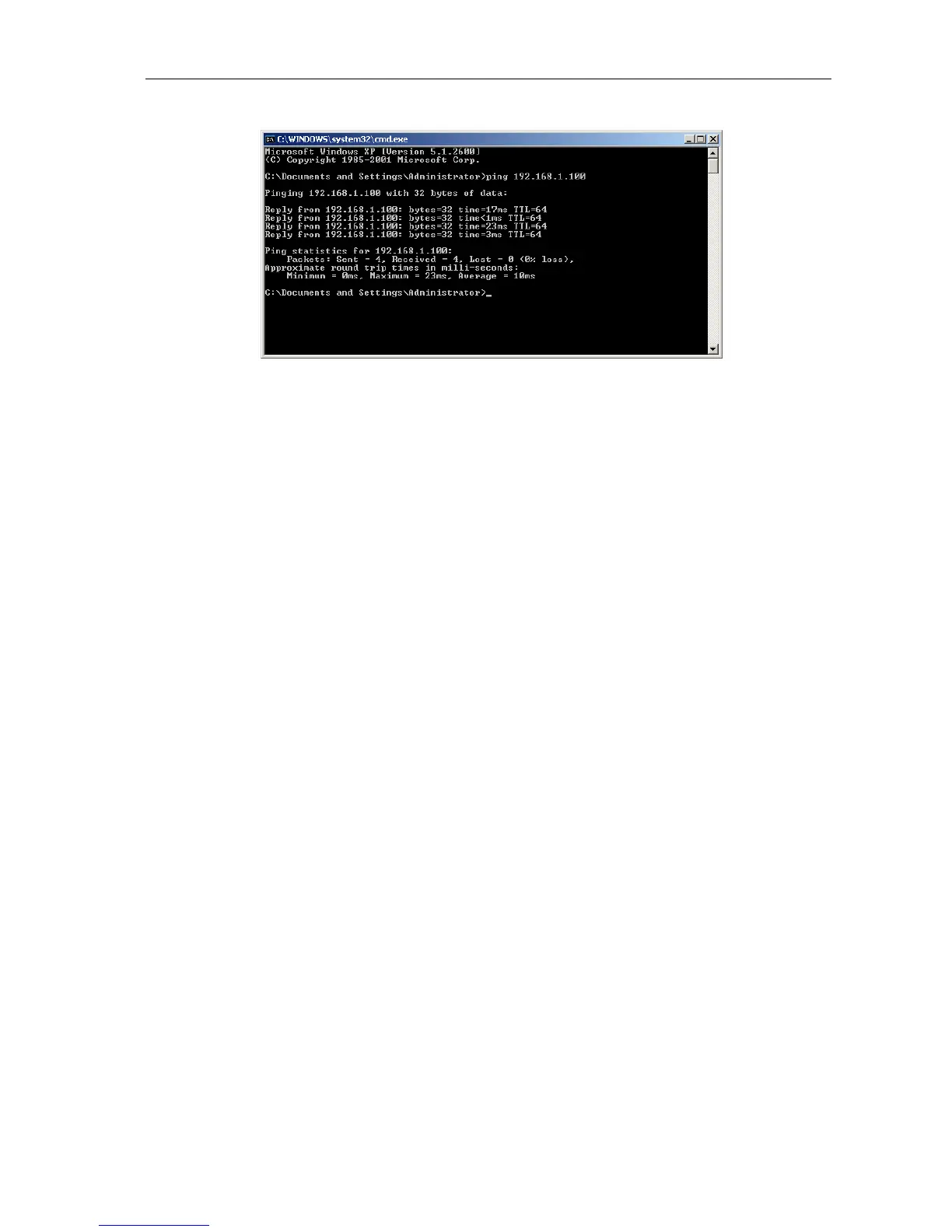 12. Geben Sie ping 192.168.1.100 ein und drücken Sie Return-Taste.