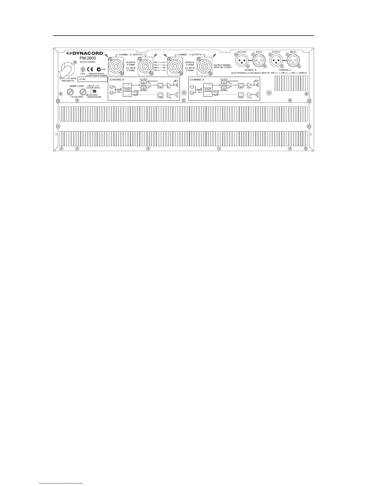 Le fusible droit protège l’alimentation secteur des amplicateurs de puissance médium-aigu (MID-HI) dans les deux