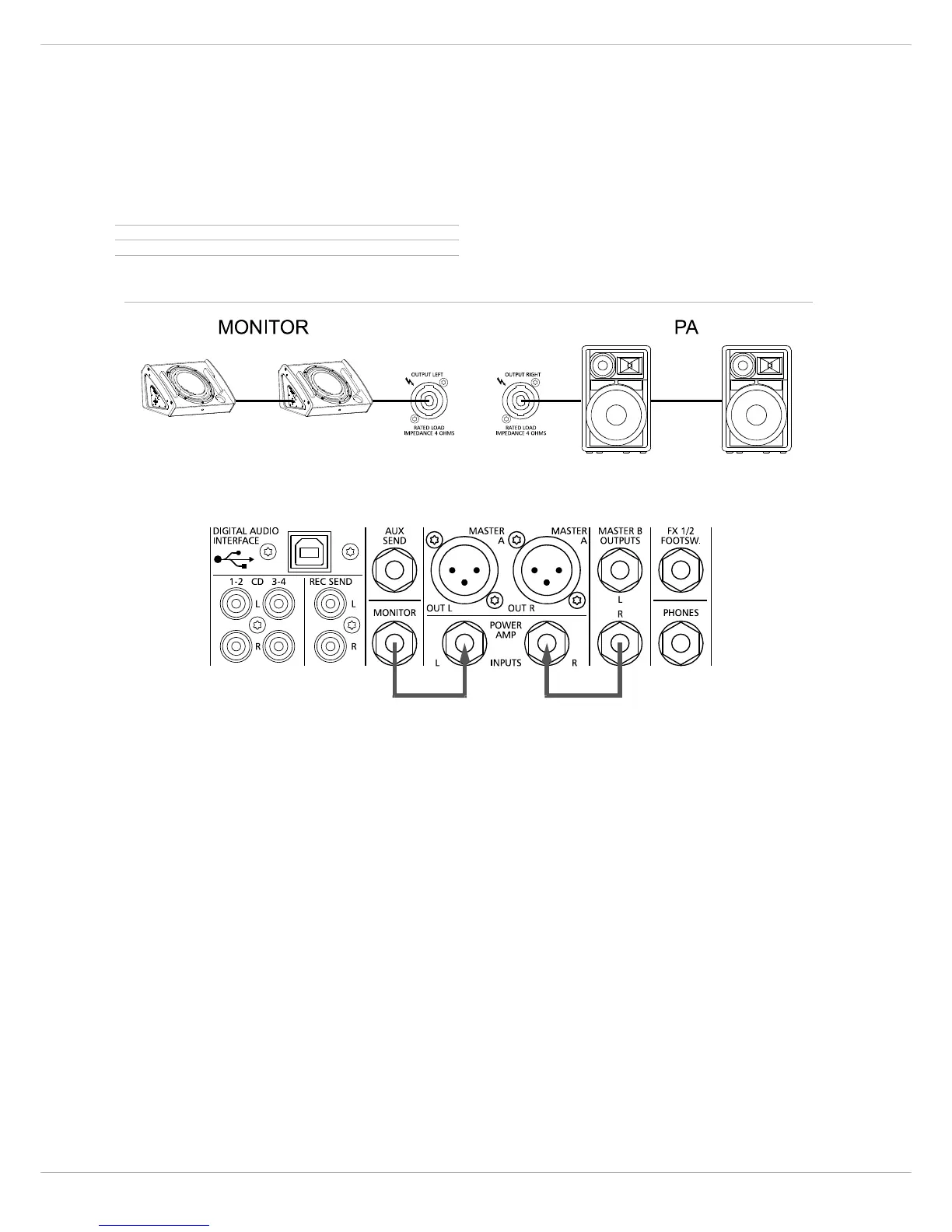 internen Endstufe wird für eine monophone PA verwendet, wobei das Signal des MASTER B-Ausgangs verwendet wird.