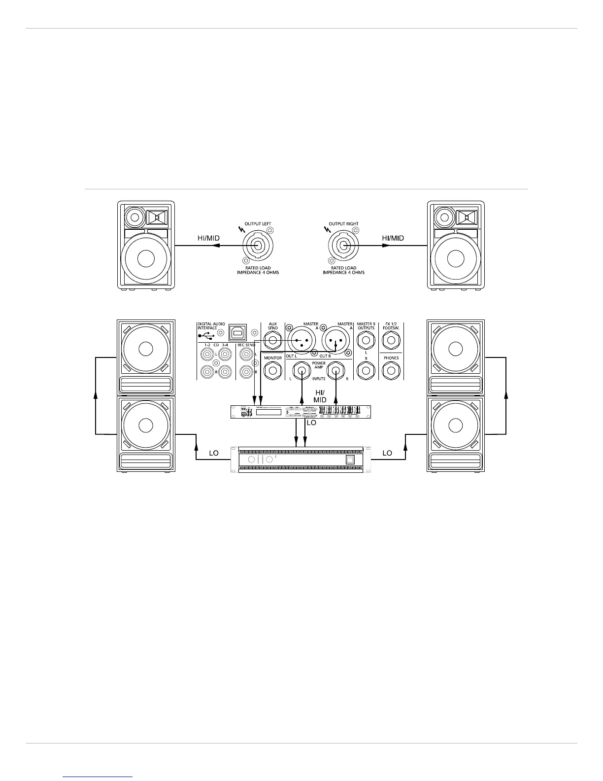 werden die tieffrequenten Signalanteile (LO) zu einer externen Endstufe geführt, die die Basslautsprecher versorgt. Die
