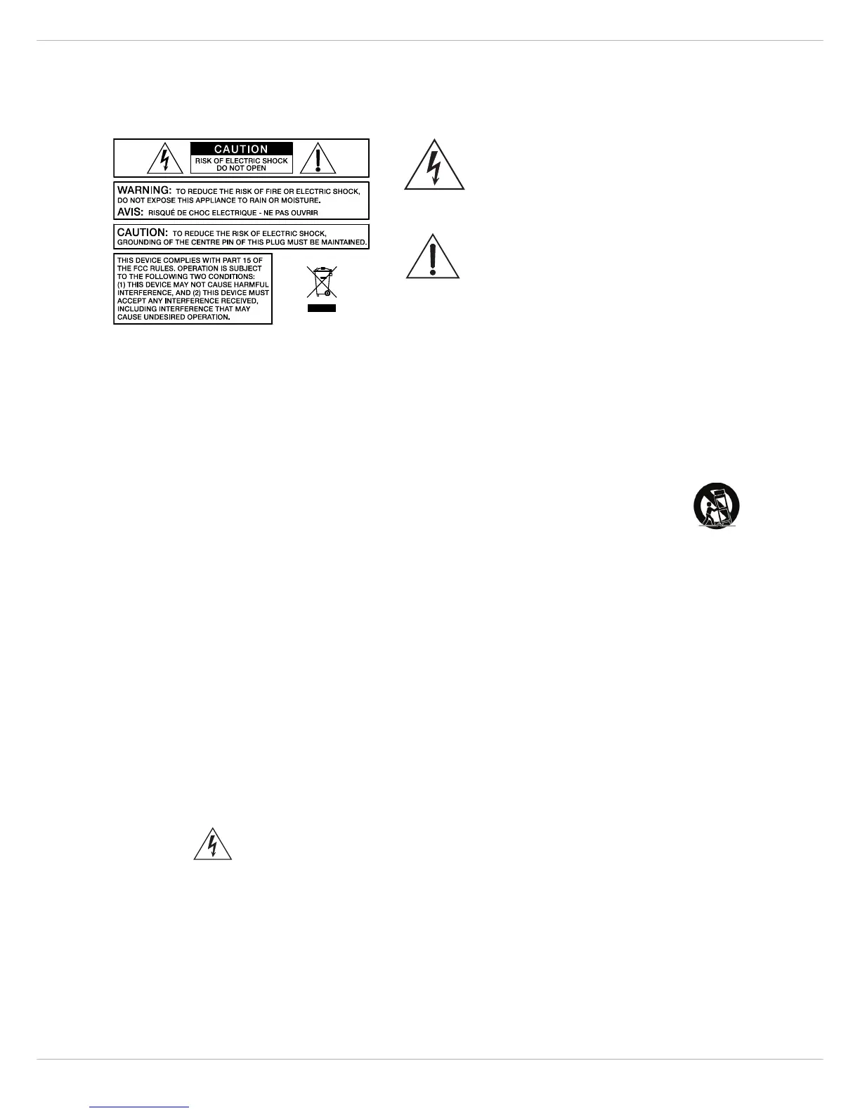 15. Do not expose this equipment to dripping or splashing and ensure that no objects filled with liquids, such as vases, are placed on the equipment.