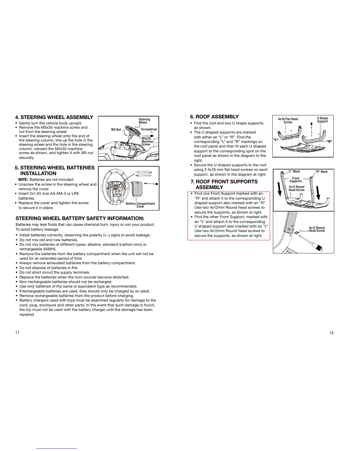 STEERING WHEEL BATTERY SAFETY INFORMATION: