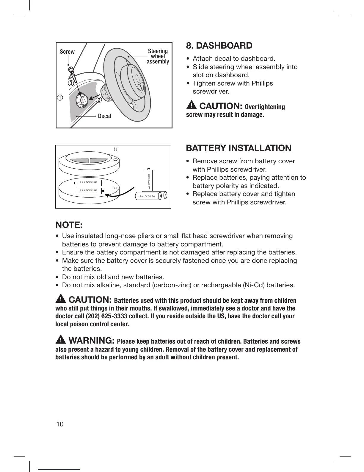 WARNING: Please keep batteries out of reach of children. Batteries and screws