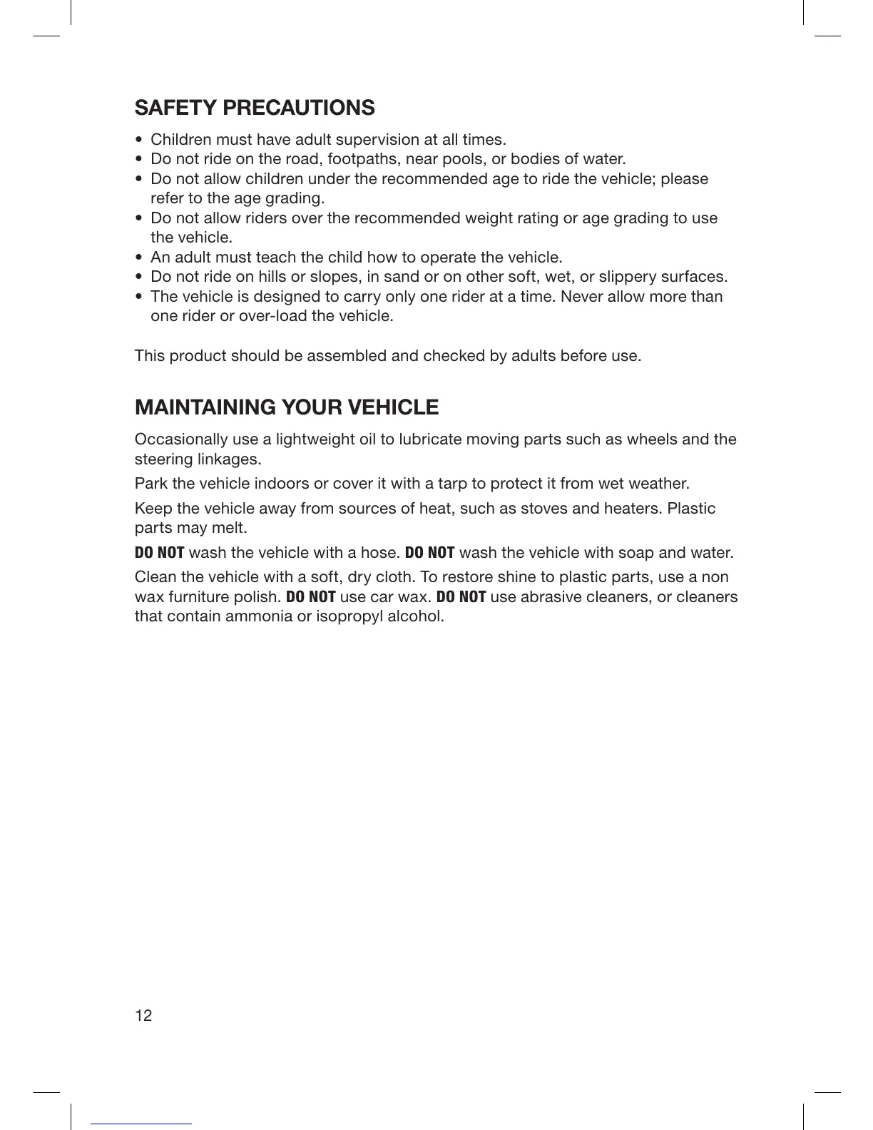 • Do not allow children under the recommended age to ride the vehicle; please