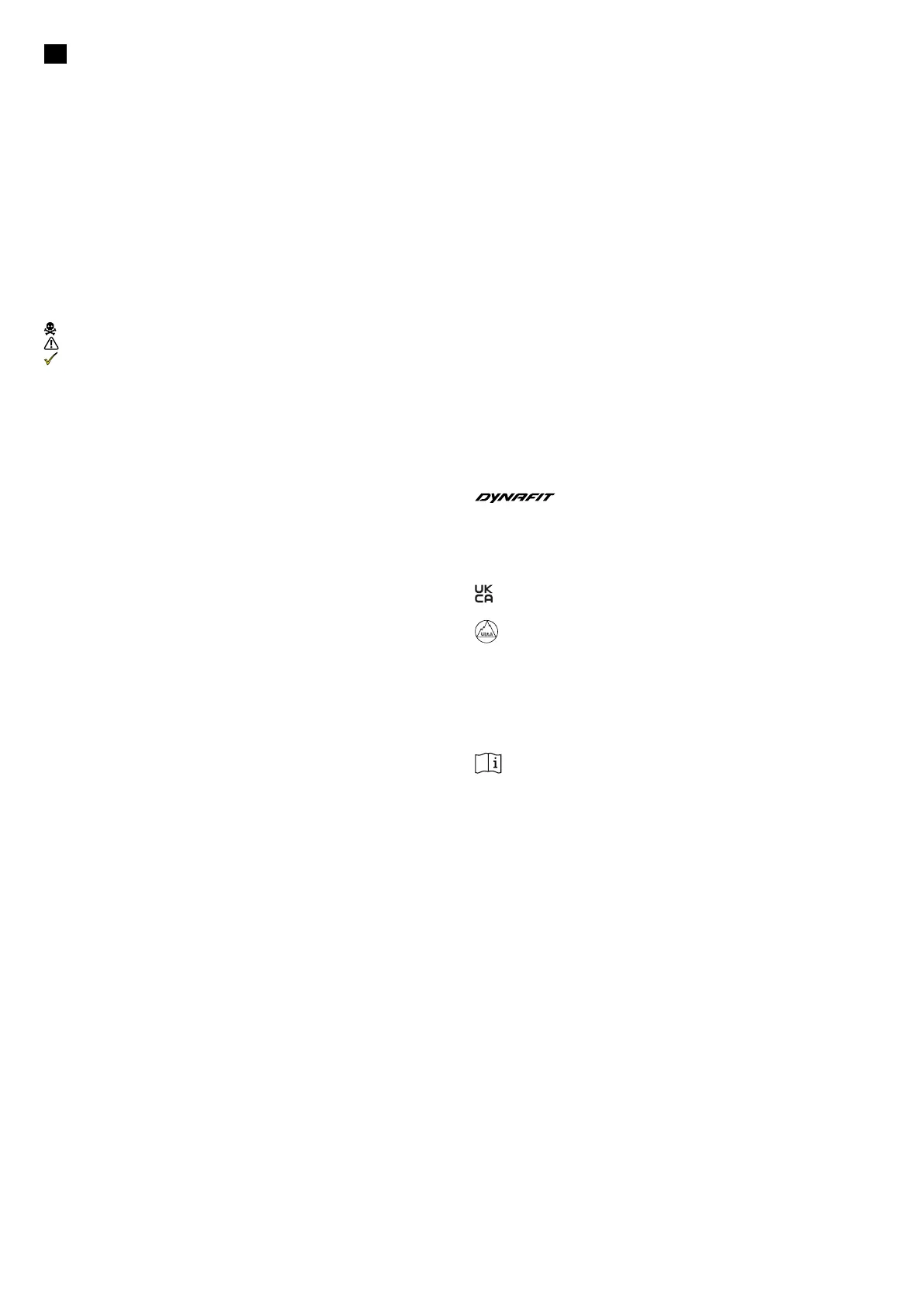 fening van deze sporten eerst op de hoogte van de hiermee gerelateerde risico’s. Dynafit adviseert