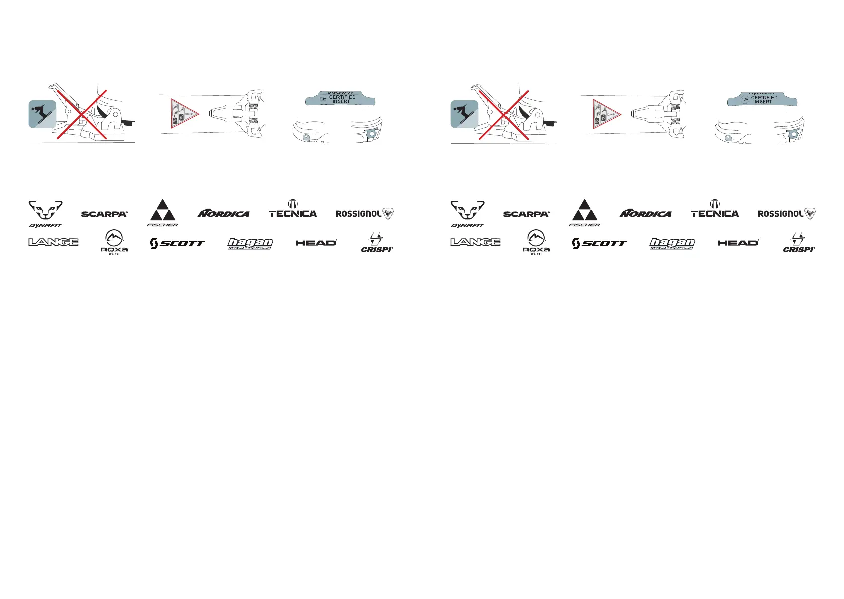 DYNAFIT garantit uniquement le bon fonctionnement de l’ensemble chaussure-xation avec les DYNAFIT CERTIFIED INSERTS