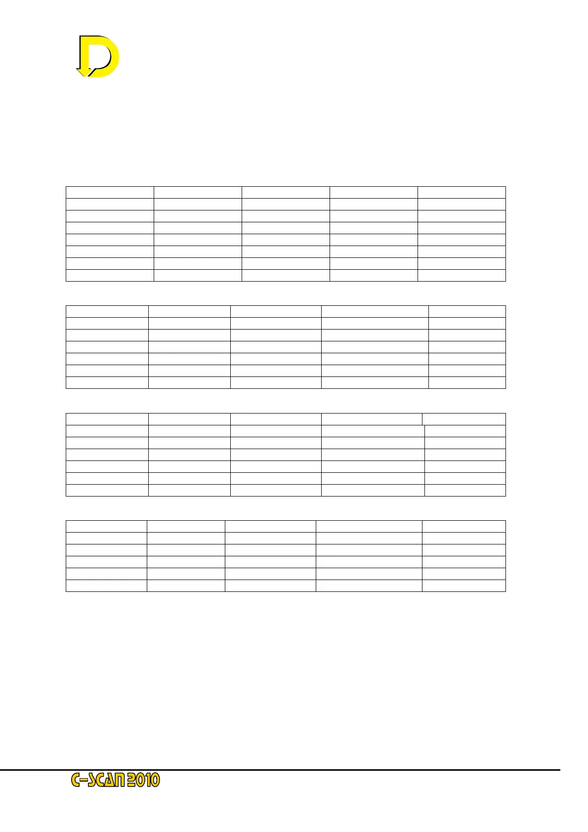 ‘standard’ surveys have been stored in the unit’s memory. The tables below show the data for
