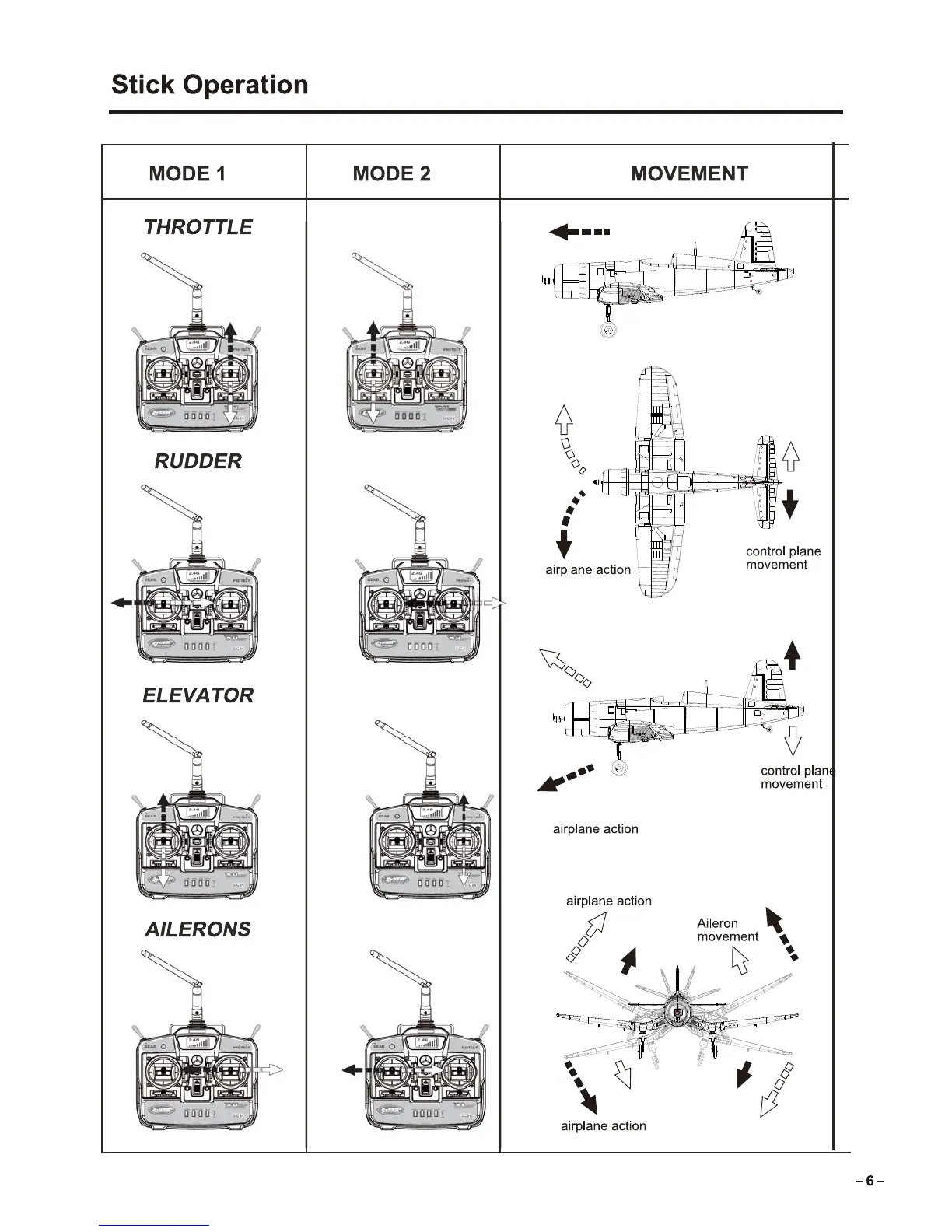 Dynam F4U Corsair - Transmitter Stick Operation