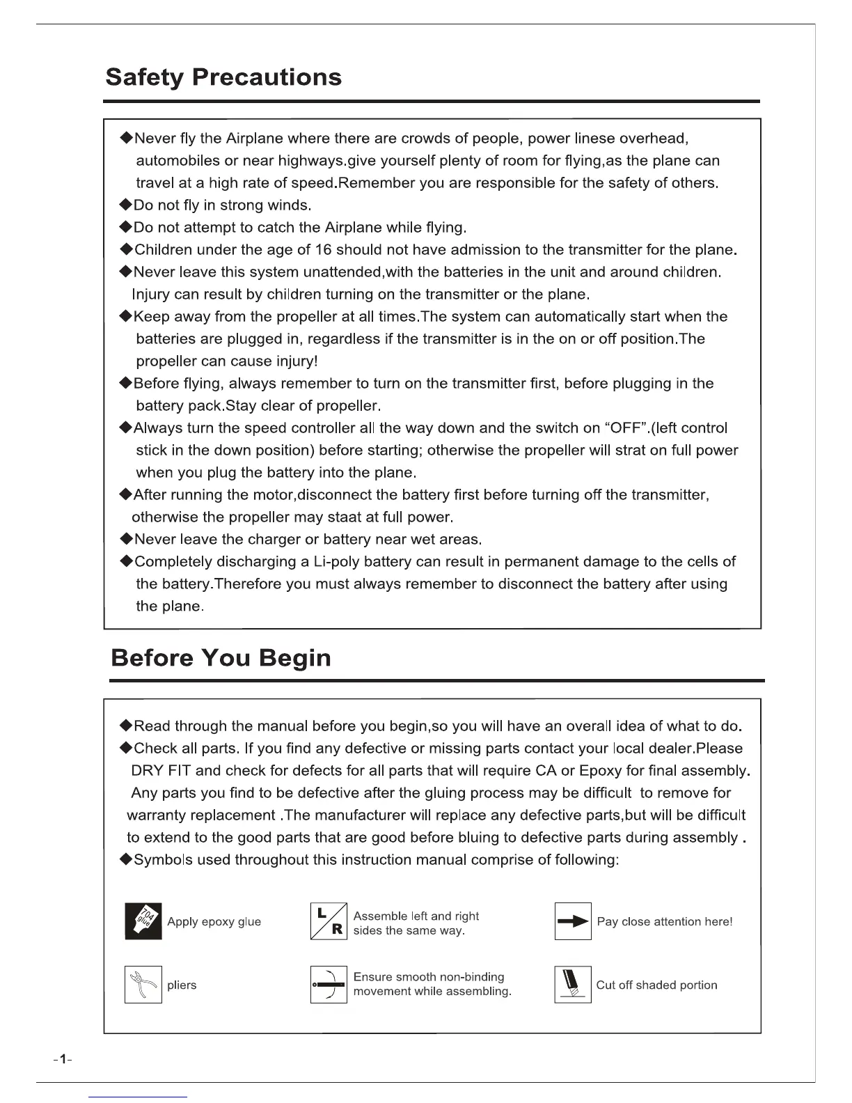 Dynam ME-262 - Before You Begin; Instruction Symbols