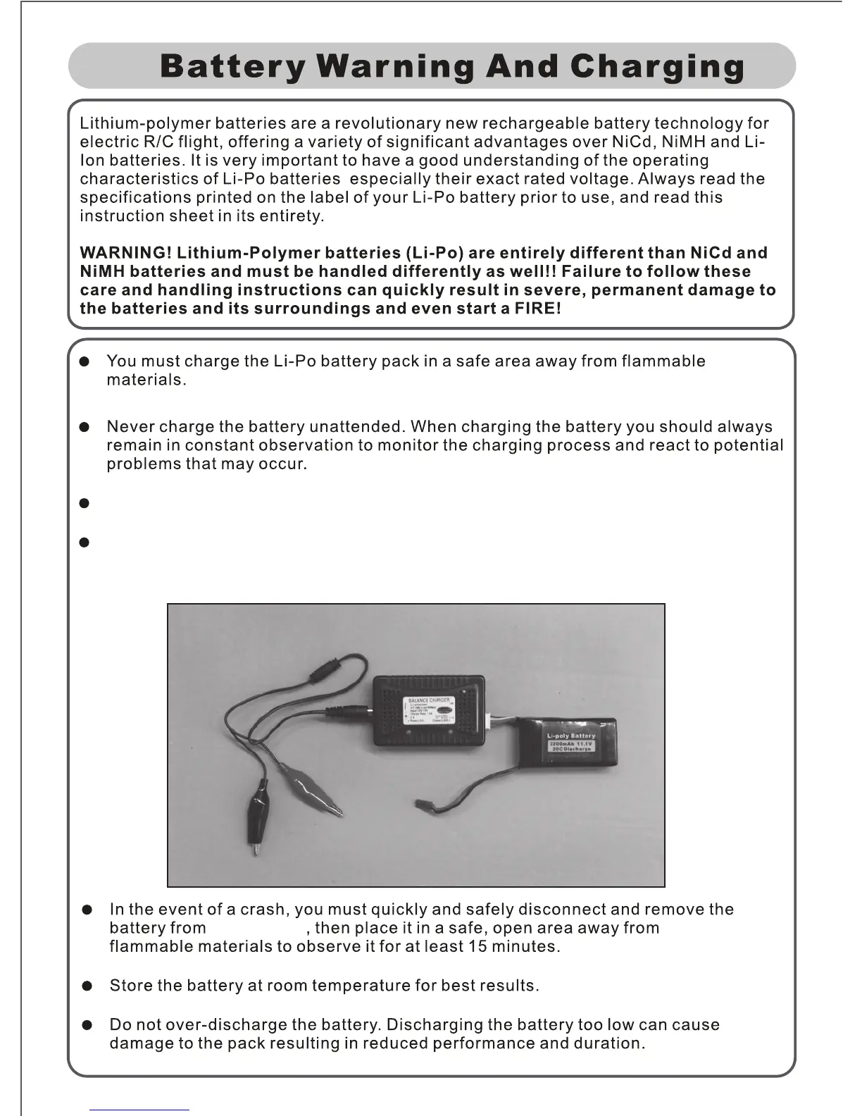 Dynam P-51D Mustang - Battery Warning And Charging; Li-Po Battery Handling and Safety