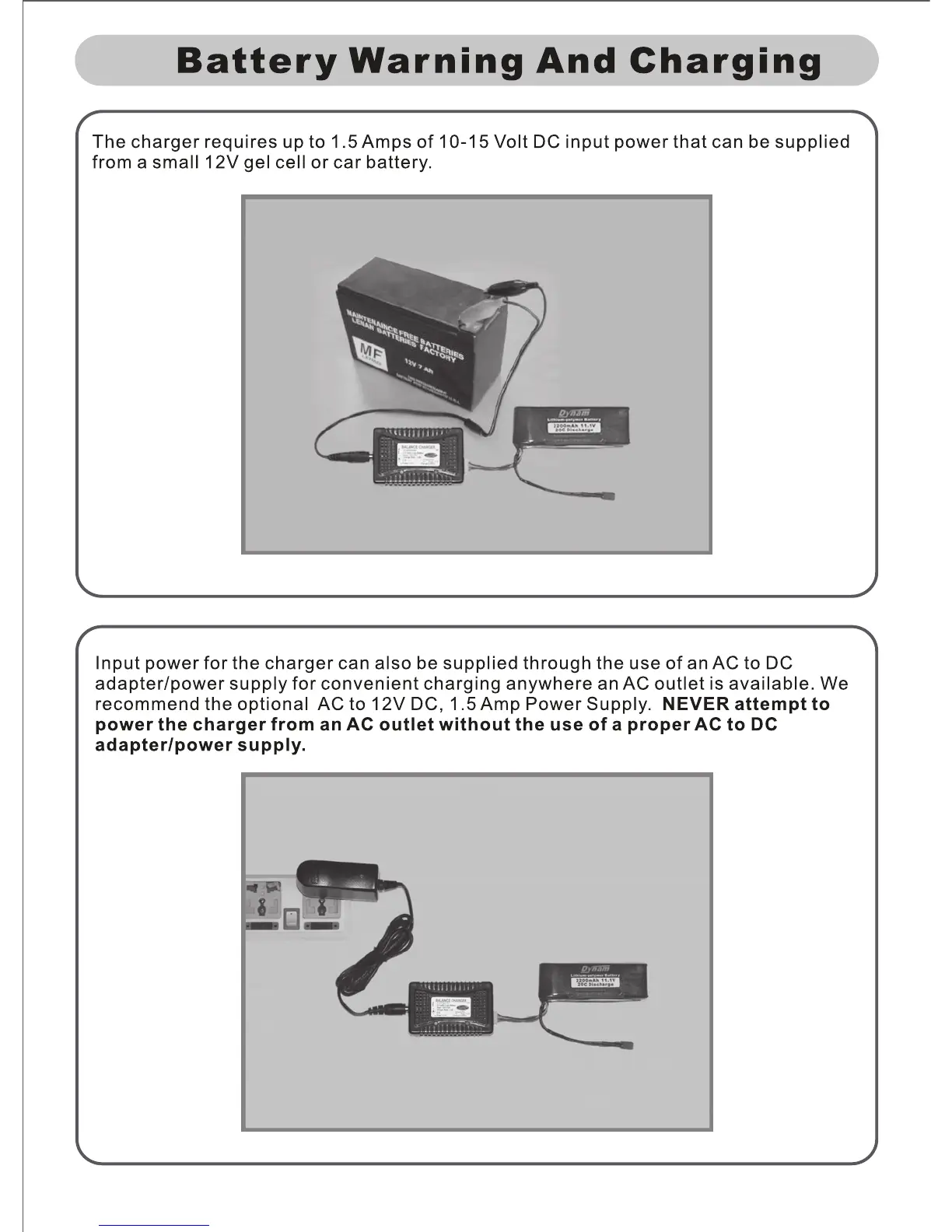 Dynam P-51D Mustang - Charging Procedures and Power Sources